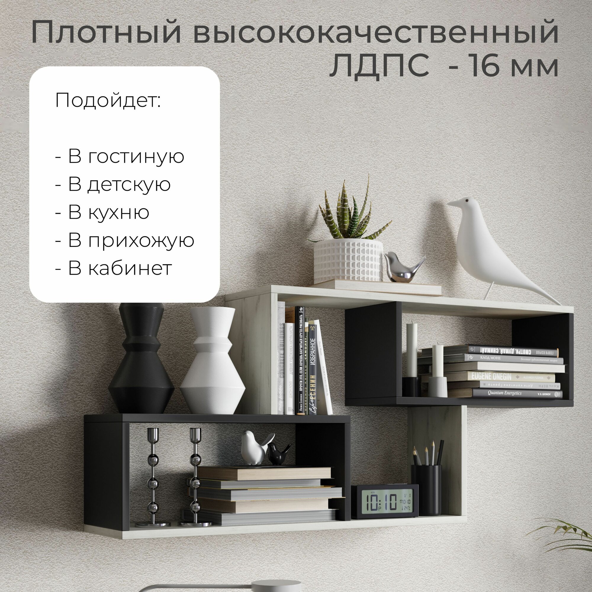| Назначение | для гостиной/спальни / для детской / для икон / для книг / для кухни / для прихожей / для роутера / для сауны/бани / для специй / для фоторамок и сувенирной продукции / универсальное |
