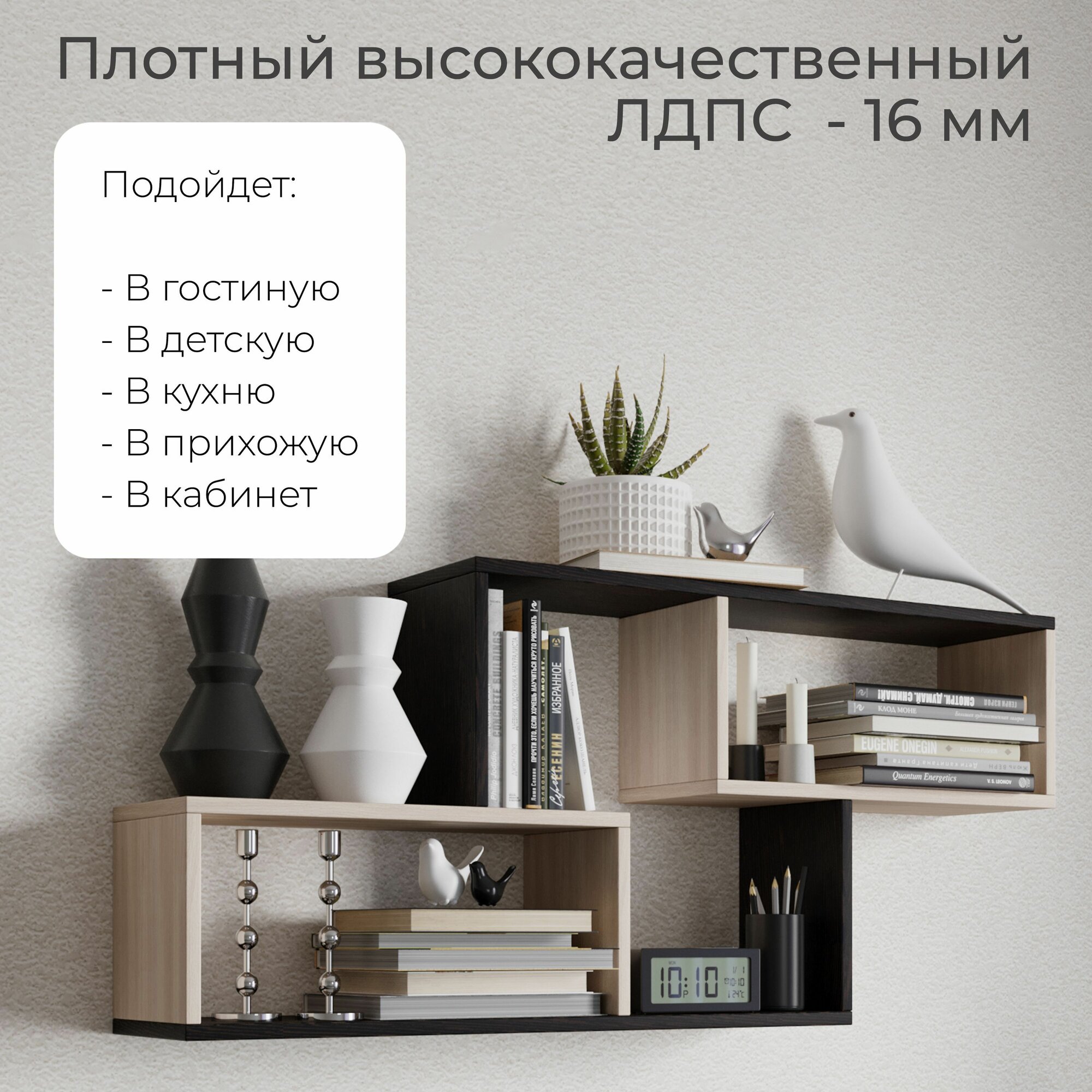 | Назначение | для гостиной/спальни / для детской / для икон / для книг / для кухни / для прихожей / для роутера / для сауны/бани / для специй / для фоторамок и сувенирной продукции / универсальное |