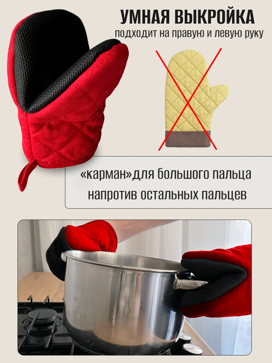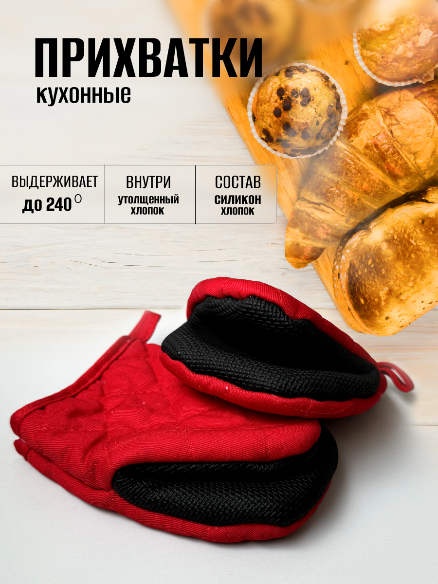 Прихватки кухонные набор 2 шт варежки универсальные красные информация: