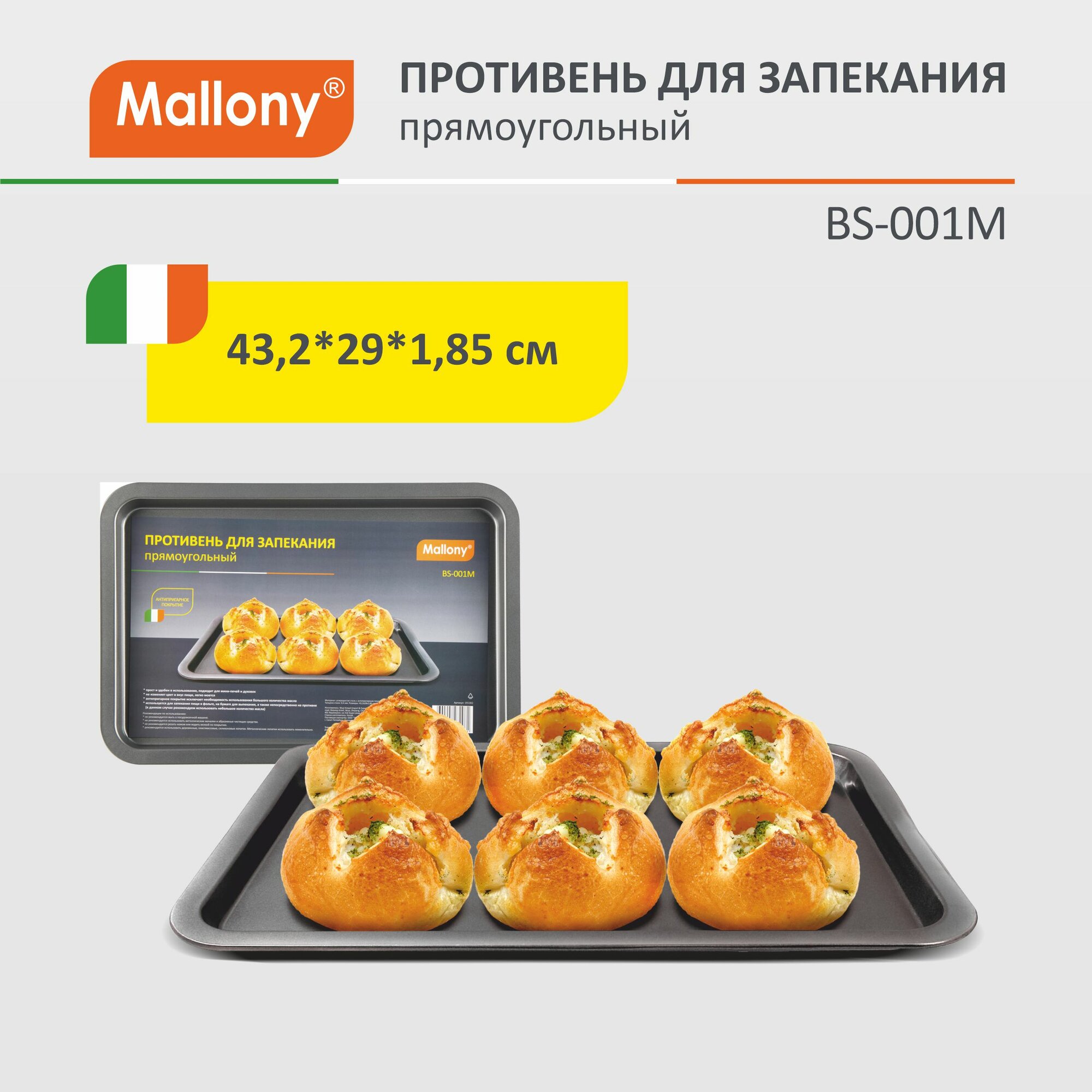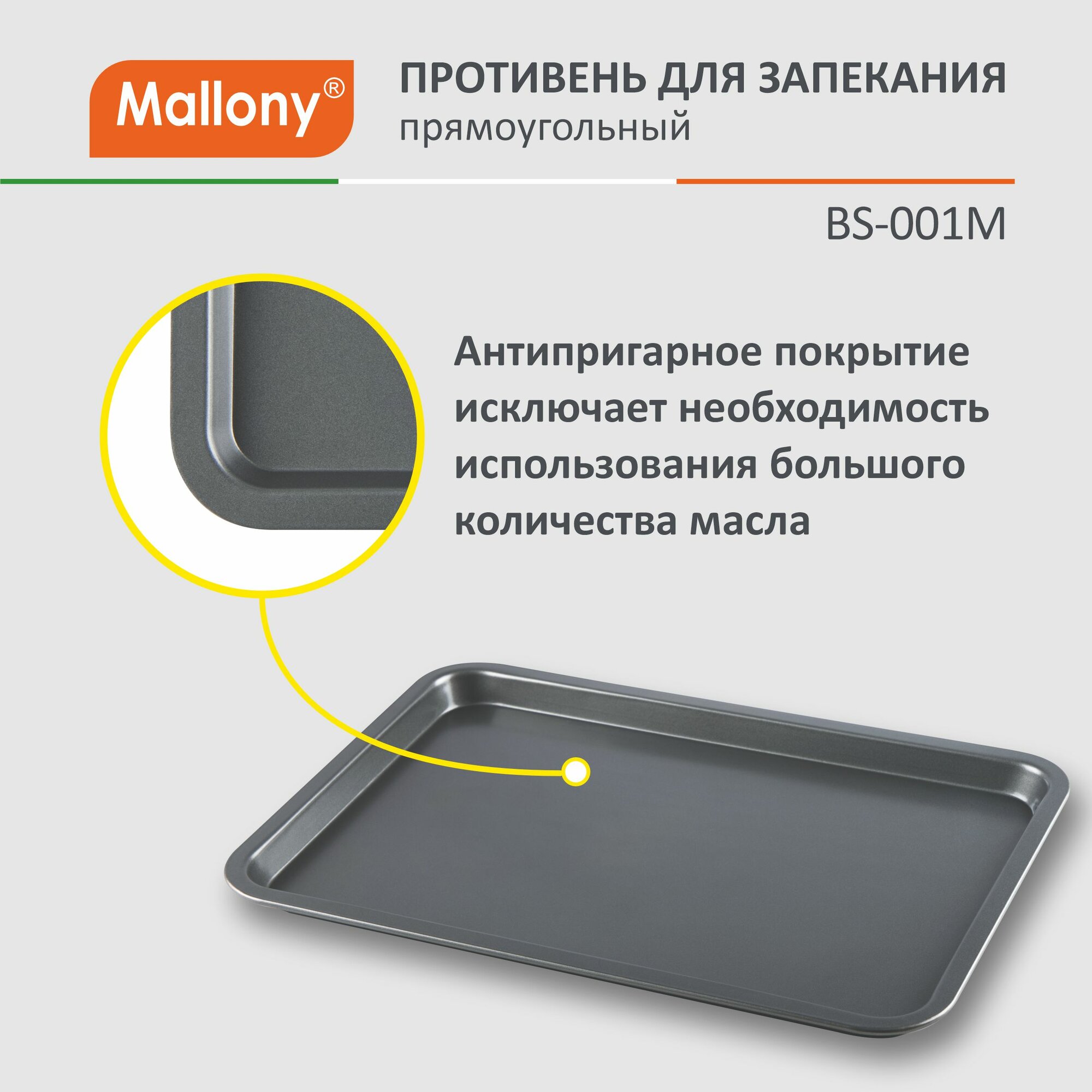 Противень для выпечки с антипригарным покрытием Mallony BS-001M, 43.2 x 29 x 1.85 см информация: