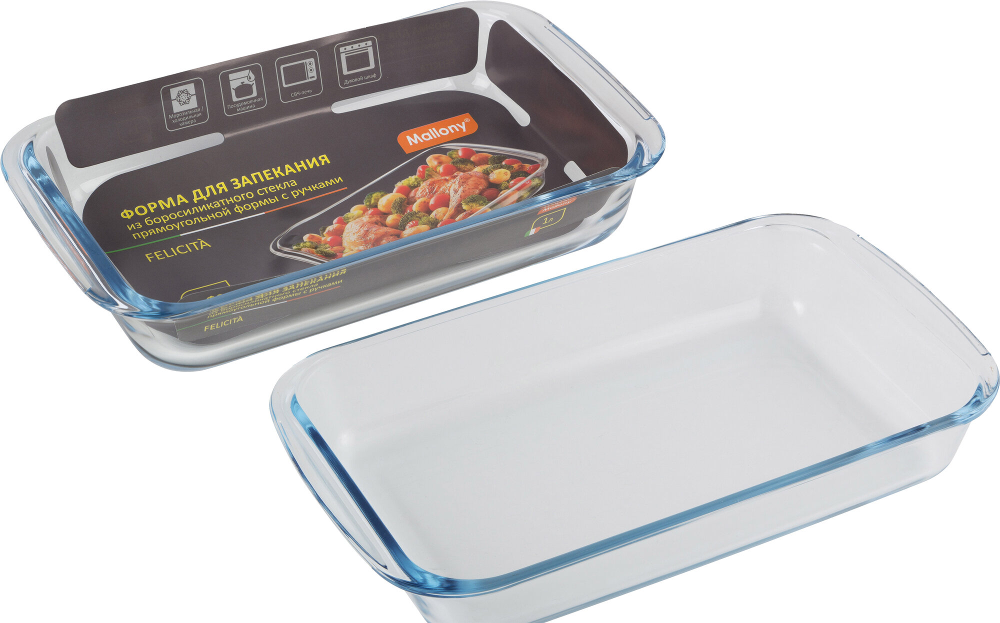 Форма для запекания из боросиликатного стекла с ручками Mallony Felicita, 25.8 x 15.3 см, 1 л информация: