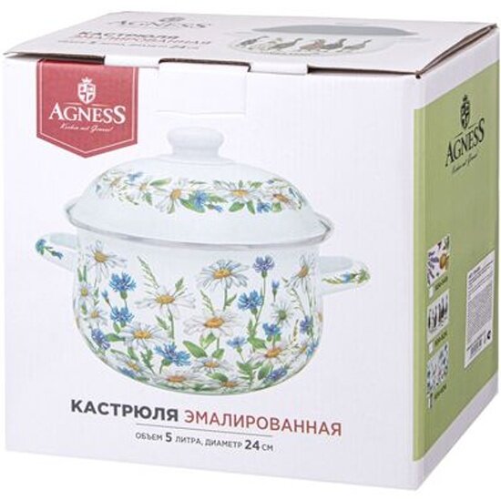 Кастрюля agness эмалированная с эмал.крышкой серия family farm, 5.0 л, 24*14 см KSG-934-624 3 077 ₽