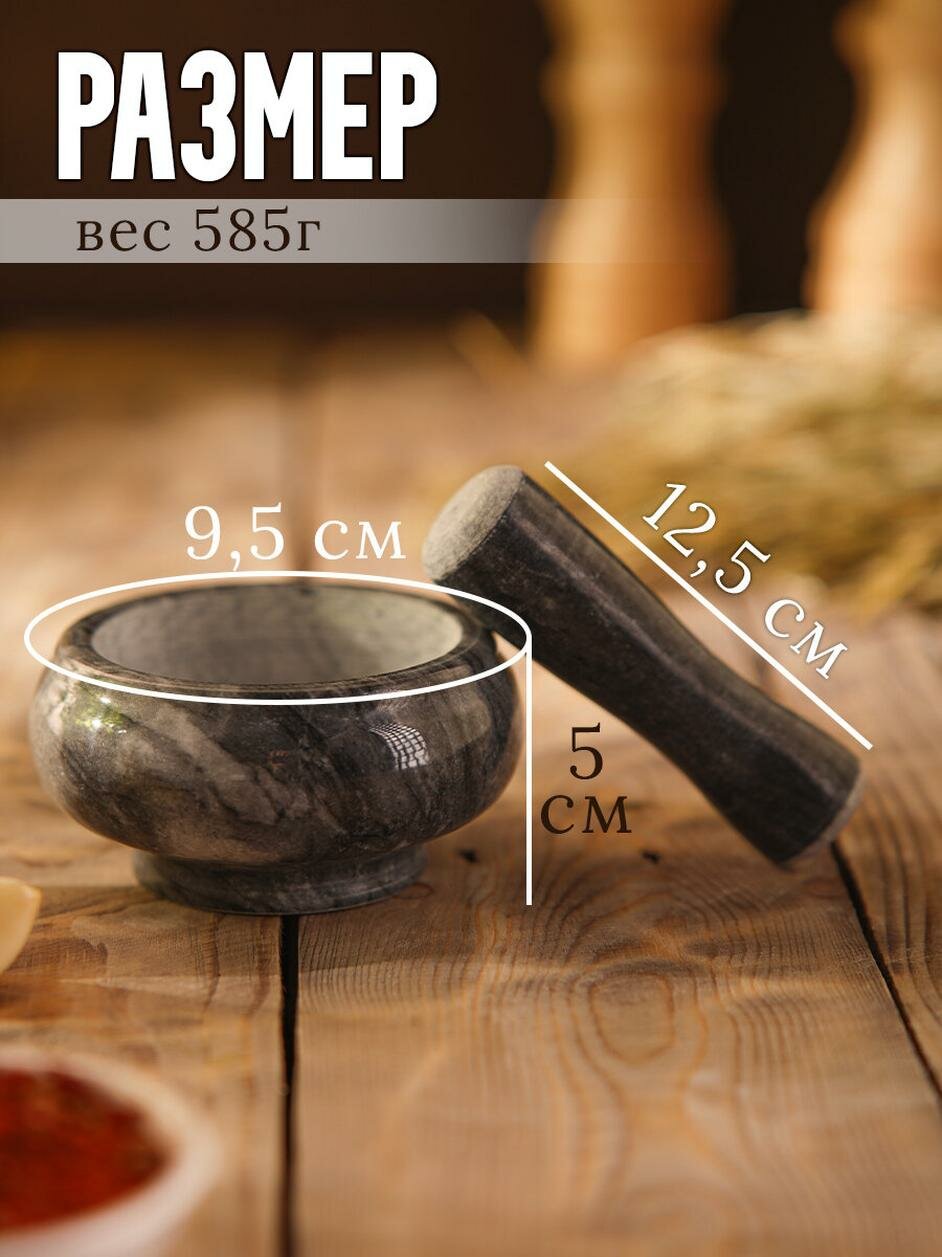 Ступка с пестиком малая, Доляна, 75 мл, 5 см, № 4, чёрный мрамор информация: