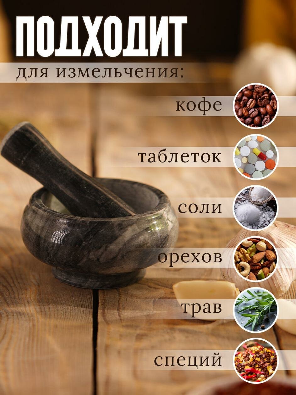 10 цен на Ступка с пестиком малая, Доляна, 75 мл, 5 см, № 4, чёрный мрамор