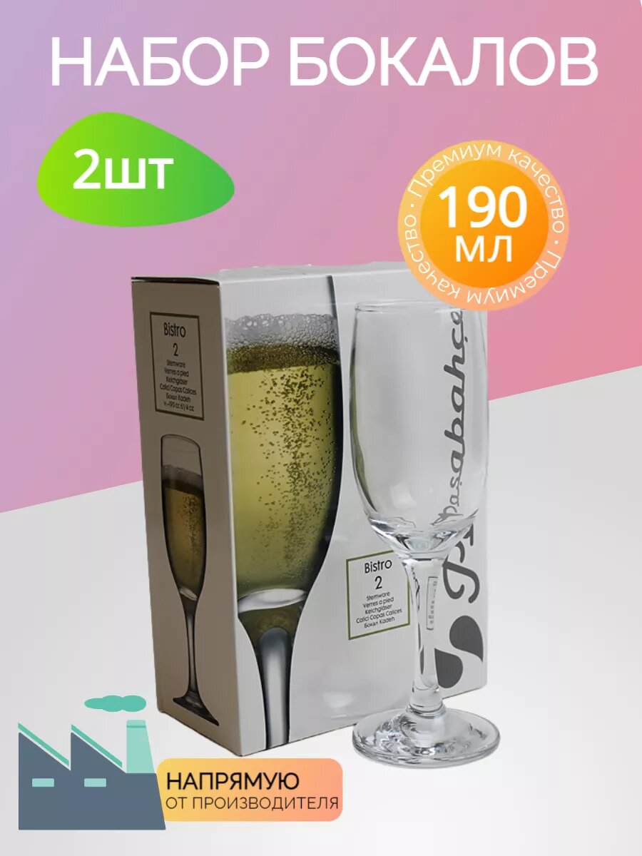 Набор фужеров для шампанского 2 шт 190мл Pasabahce Бистро 619 ₽