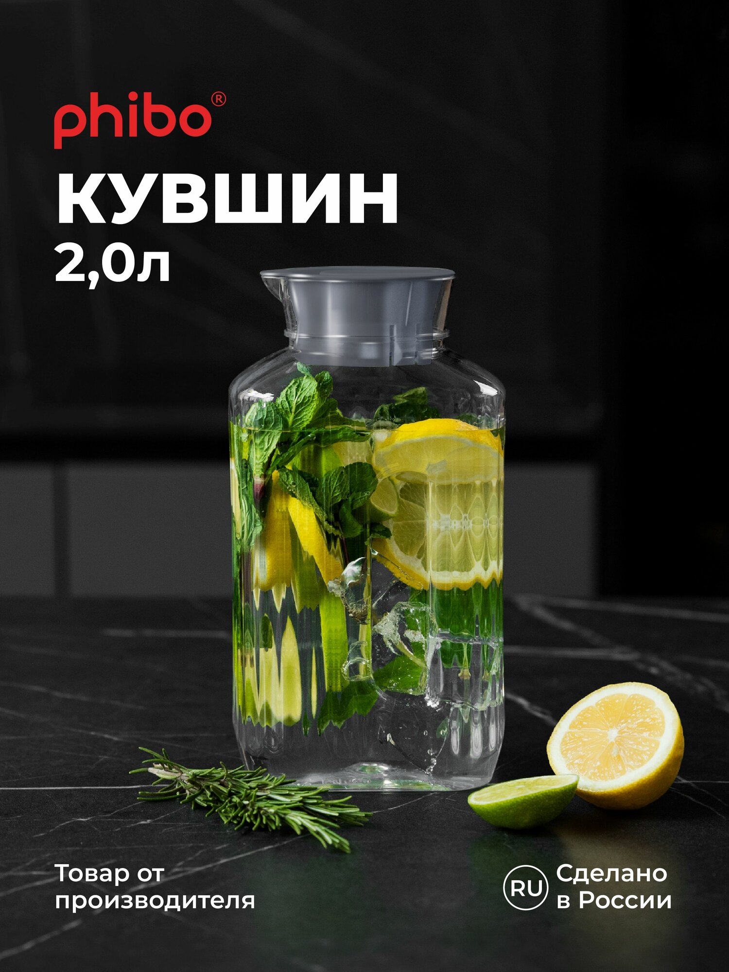 Кувшин Phibo Trend, пластик, прозрачный, универсальный, 22 см, 1,5 л 376 ₽