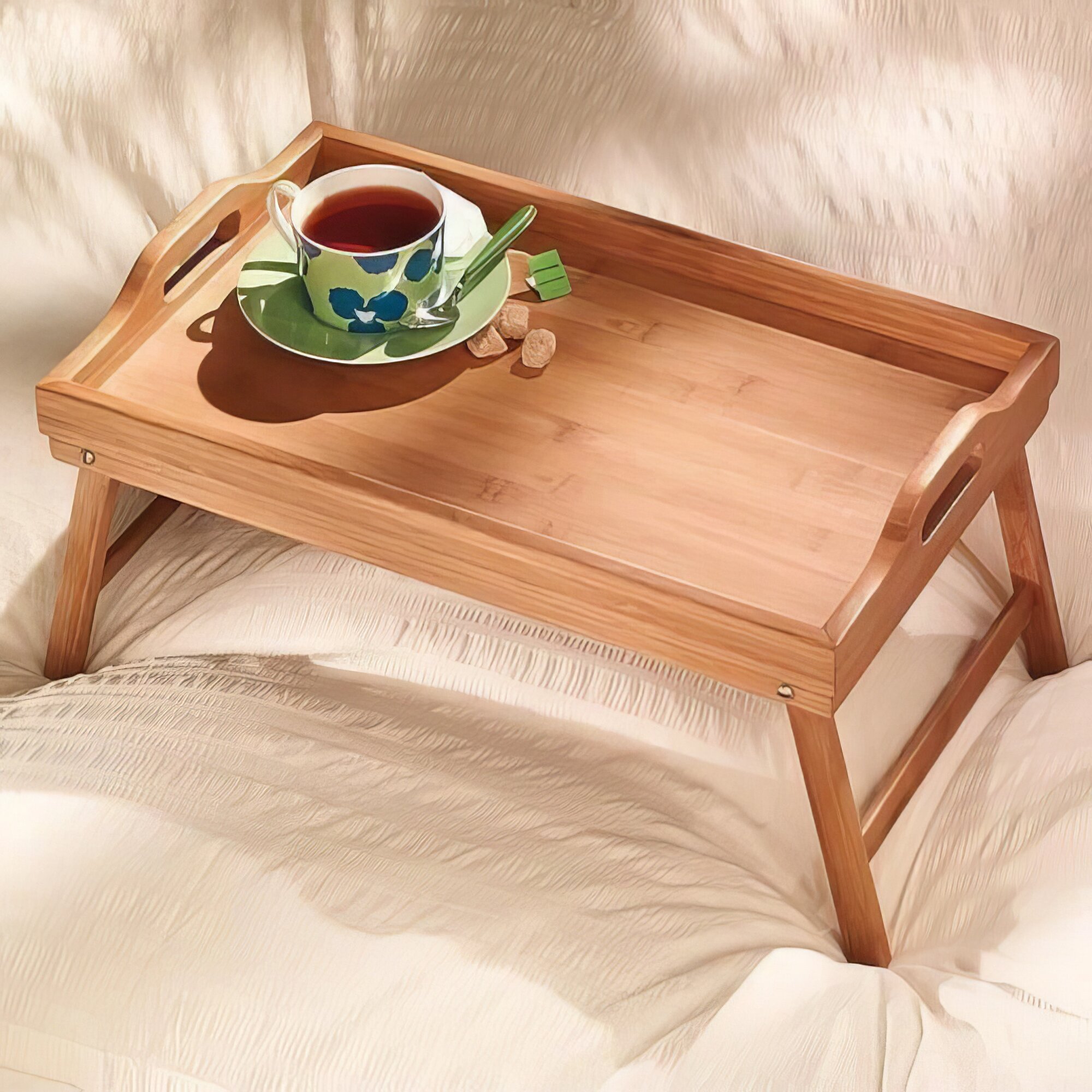 Складной столик поднос деревянный / Столик для завтрака бамбуковый / Столик складной в кровать с ножками / Раскладной деревянный сервировочный поднос - столик / Поднос на ножках из бамбука, LettBrin