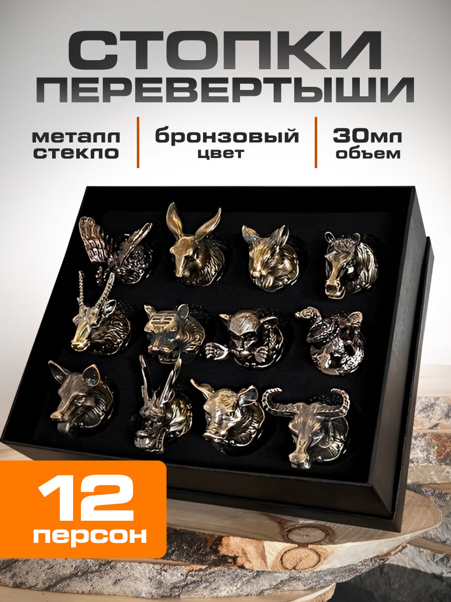 | Дополнительная информация | Набор рюмок-перевертышей высокого качества с головами животных — оригинальный подарок для охотника, рыболова, а также будет незаменим на большом дружеском застолье или на охотничьем привале. Набор выполнен под двенадцать знаков зодиака, каждый из которых принадлежит определенному животному. Стопки будут прекрасно сочетаться с любой сервировкой и могут использовать как для повседневного использования, так и для особых случаев. Кроме того, стеклянные прозрачные рюмки легко моются и не подвергаются коррозии. |
