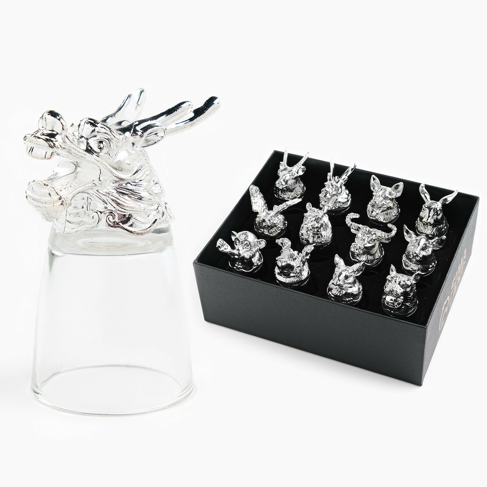 | Дополнительная информация | Набор рюмок-перевертышей высокого качества с головами животных — оригинальный подарок для охотника, рыболова, а также будет незаменим на большом дружеском застолье или на охотничьем привале. Набор выполнен под двенадцать знаков зодиака, каждый из которых принадлежит определенному животному. Стопки будут прекрасно сочетаться с любой сервировкой и могут использовать как для повседневного использования, так и для особых случаев. Кроме того, стеклянные прозрачные рюмки легко моются и не подвергаются коррозии. |
