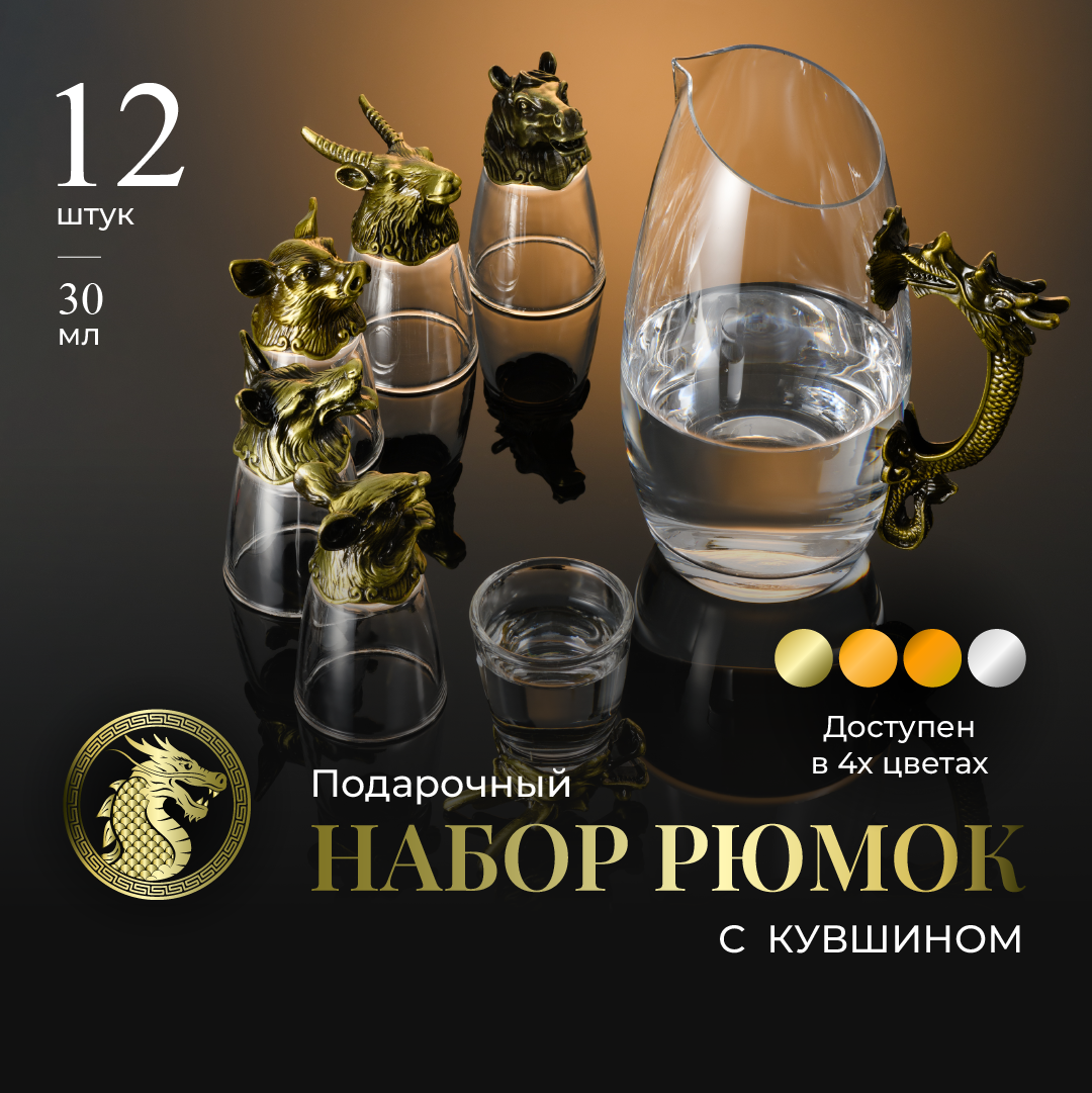 Отзывы на Подарочные рюмки перевертыши с графином, Your Highball, Стопки стеклянные для водки, Набор 12 шт, Бронзовый