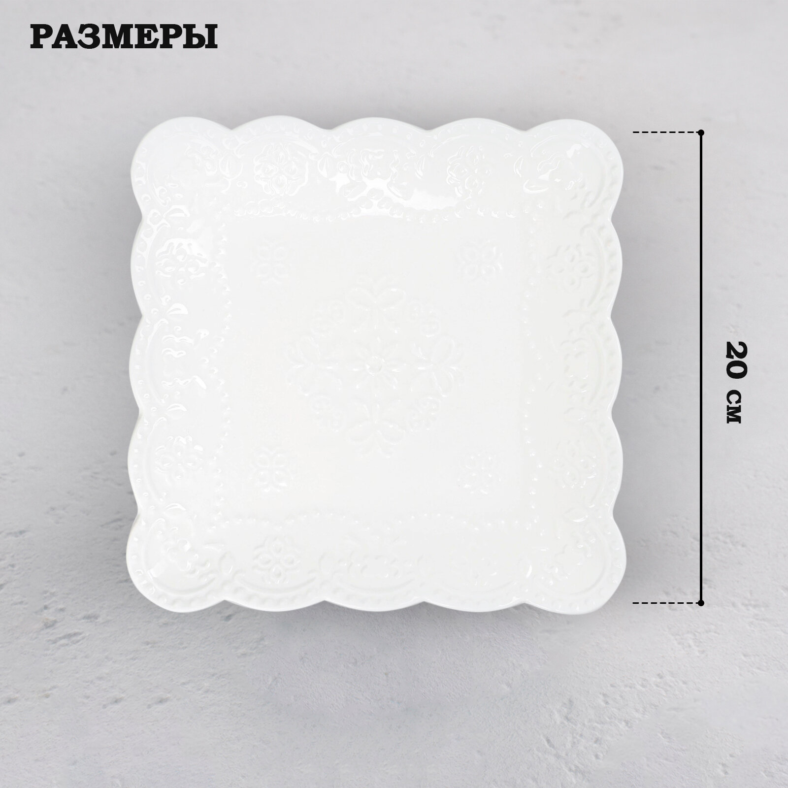 Тарелка фарфоровая квадратная Доляна «Сьюзен», 20×20 см, цвет белый информация: