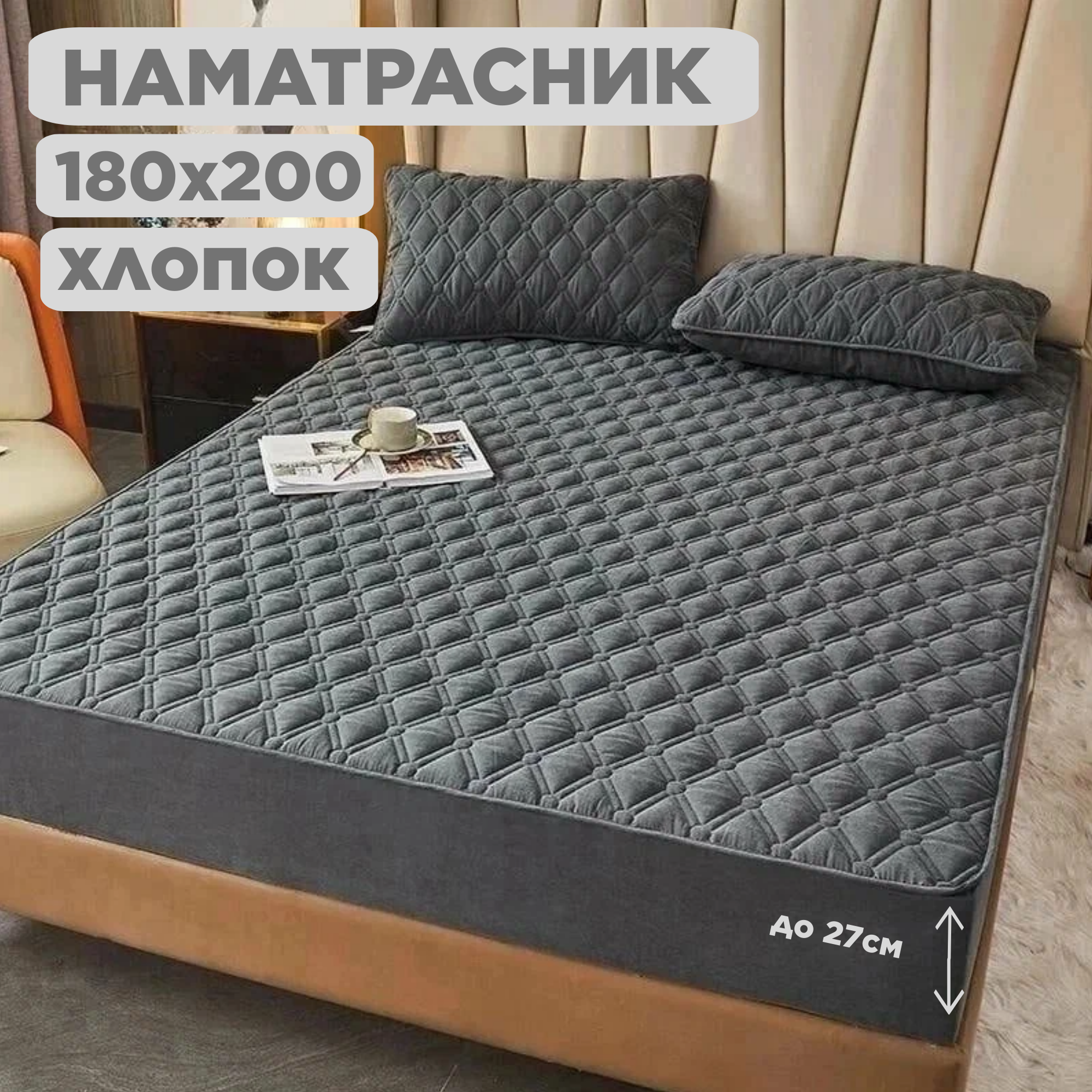 Наматрасник Mency, стеганный, на резинке, 180x200x27 см, серый 2 555 ₽