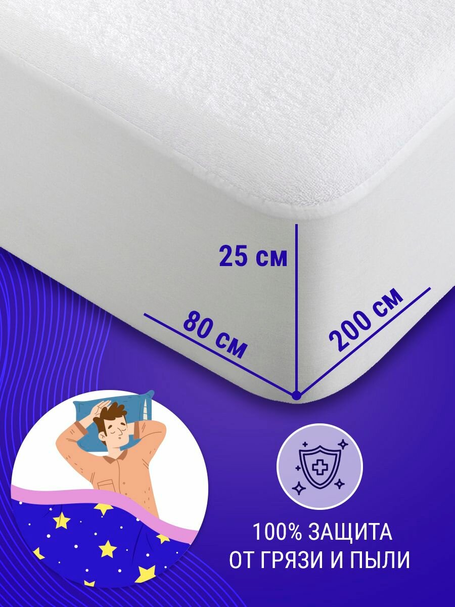 Наматрасник 80х200 непромокаемый с бортом на резинке, Tessolo Home, белый информация: