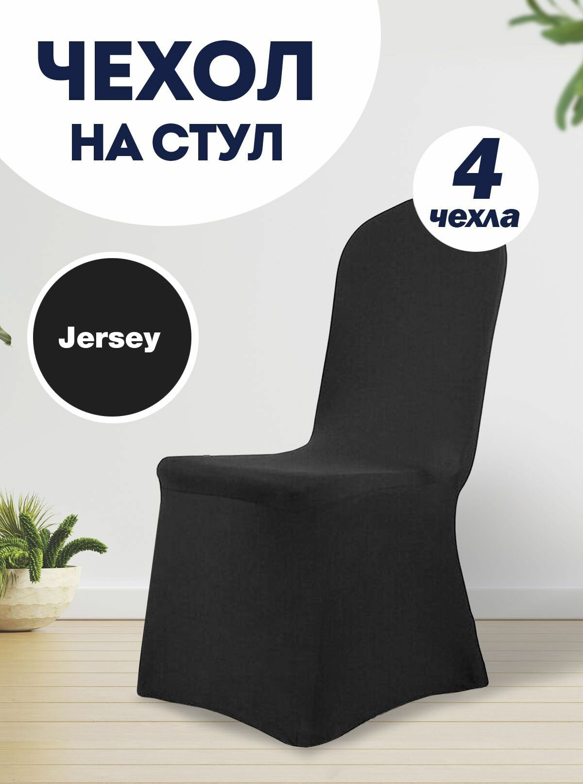 Чехол LuxAlto на стул со спинкой Jersey универсальный Чехол LuxAlto, Черный, 4 шт. информация: