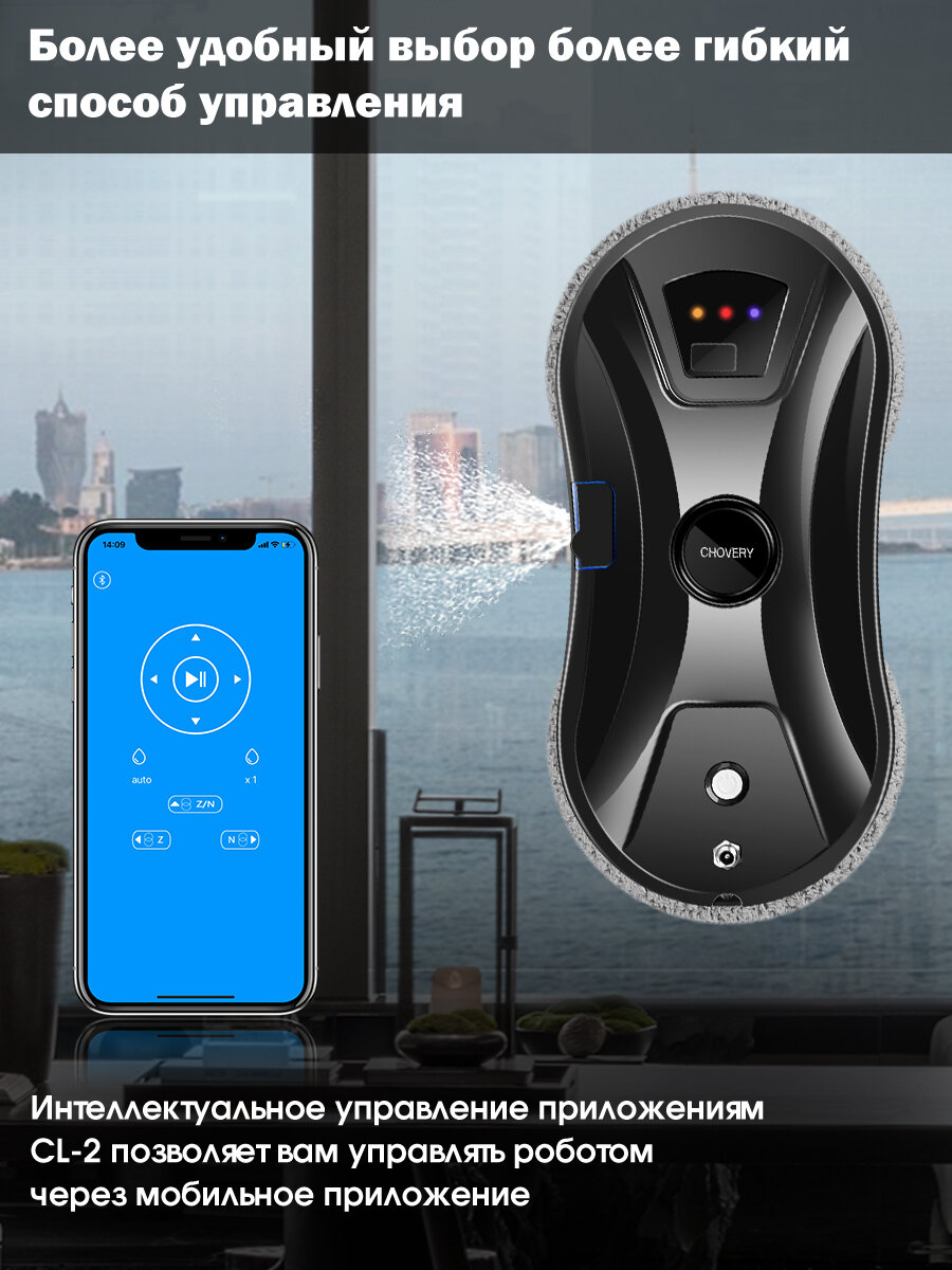 Робот мойщик окон с распылением CL-2, Робот для мойки окон со Мобильное приложение сменными +салфетками 10 шт, черный информация: