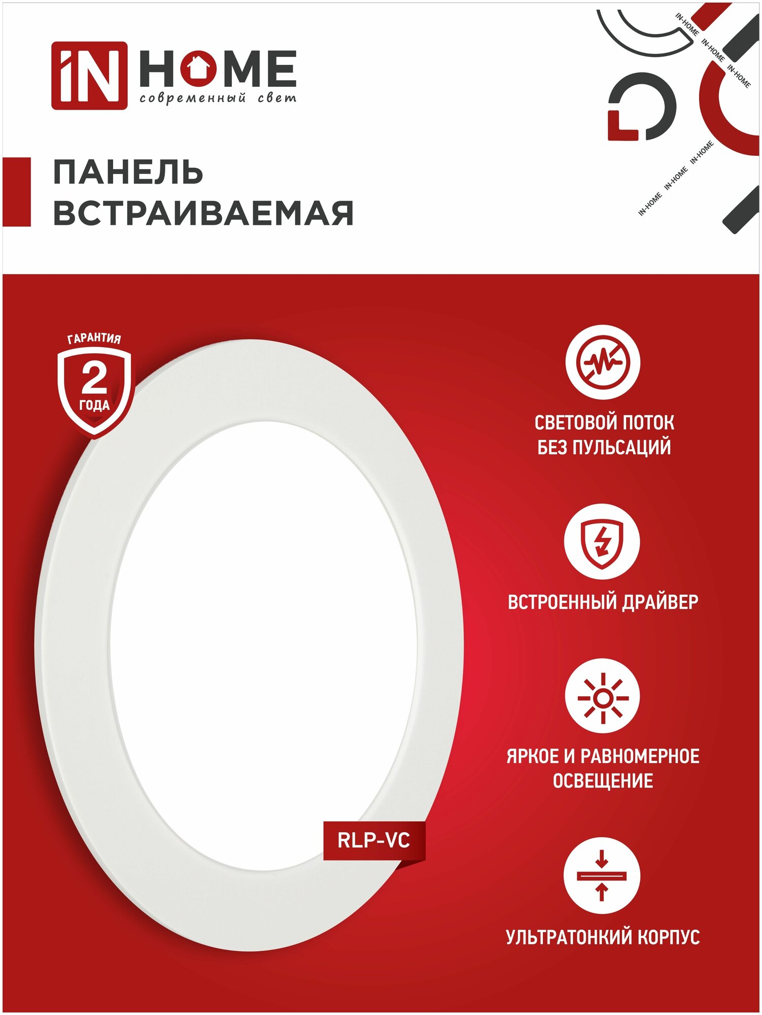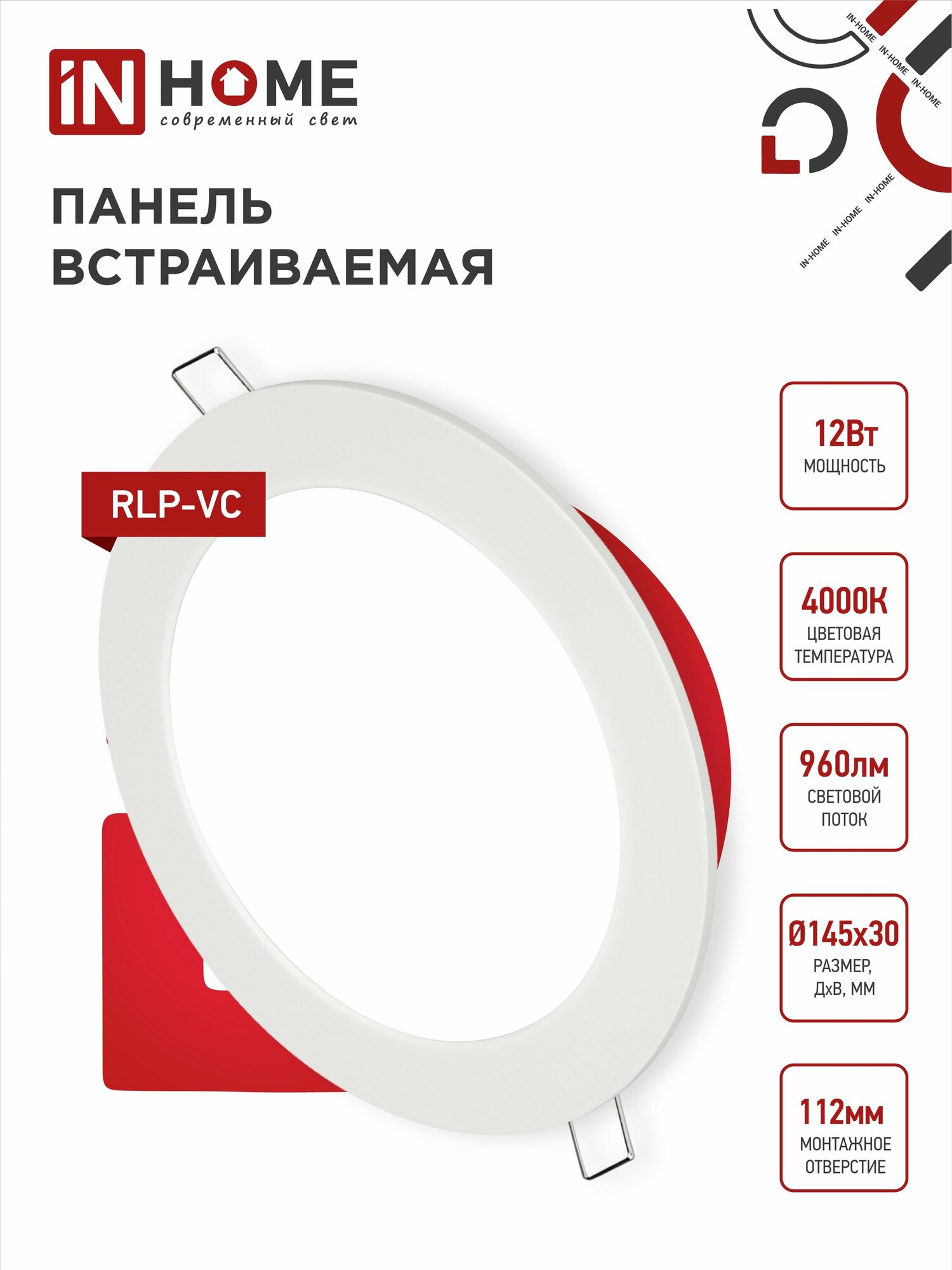 Отзывы на Светильник светодиодный RLP-VC 12Вт 4000К IP40 960лм 230В 145мм круглый встраив. панель бел. IN HOME 4690612023366