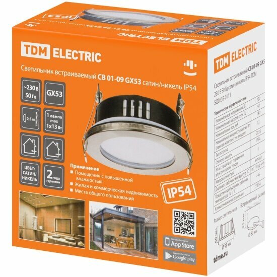 Отзывы на Встраиваемый светильник Tdm Electric СВ 01-09 GX53 230 В 50 Гц сатин/никель IP54, SQ0359-0113