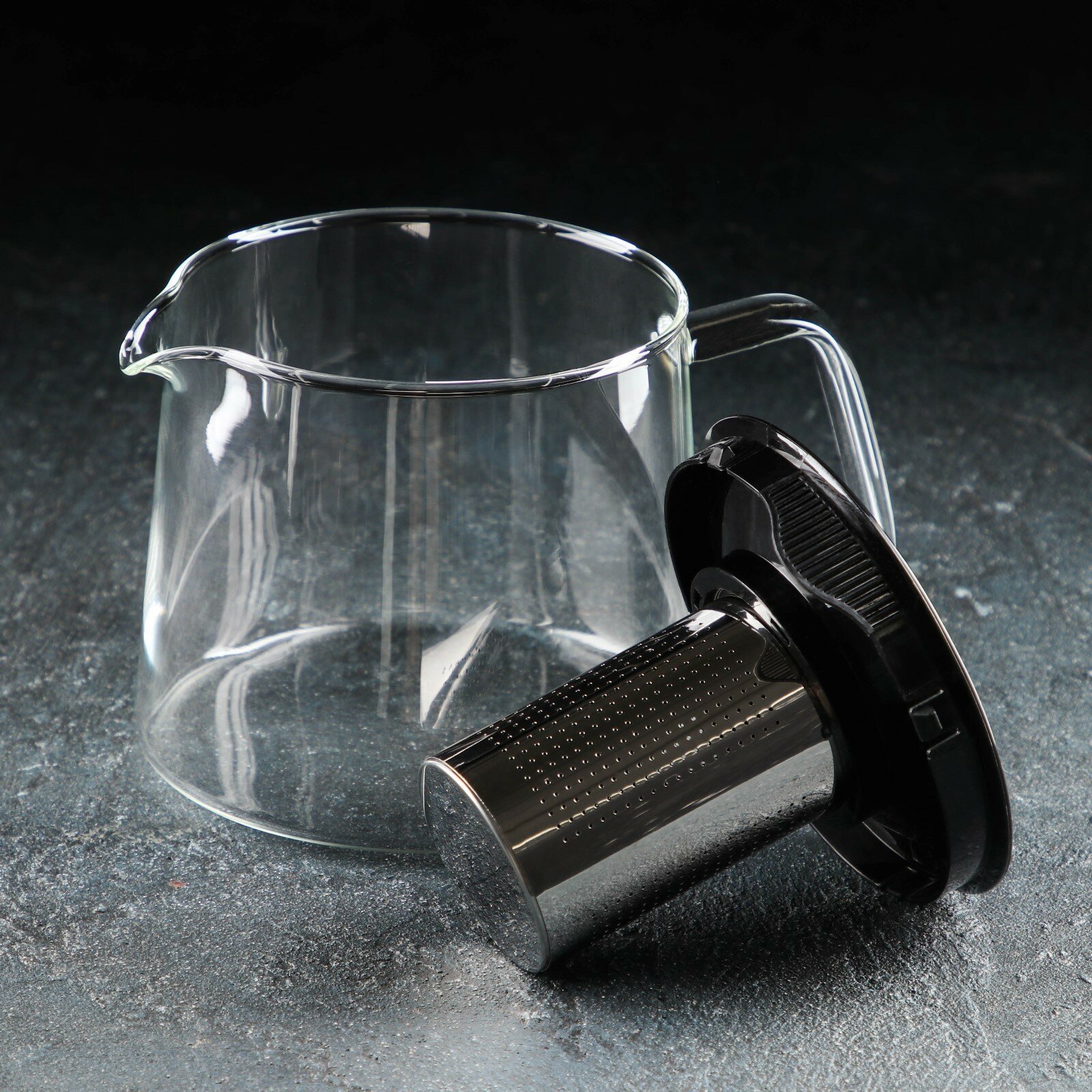 Чайник стеклянный заварочный «Локи», 1,4 л, с металлическим ситом, цвет чёрный информация: