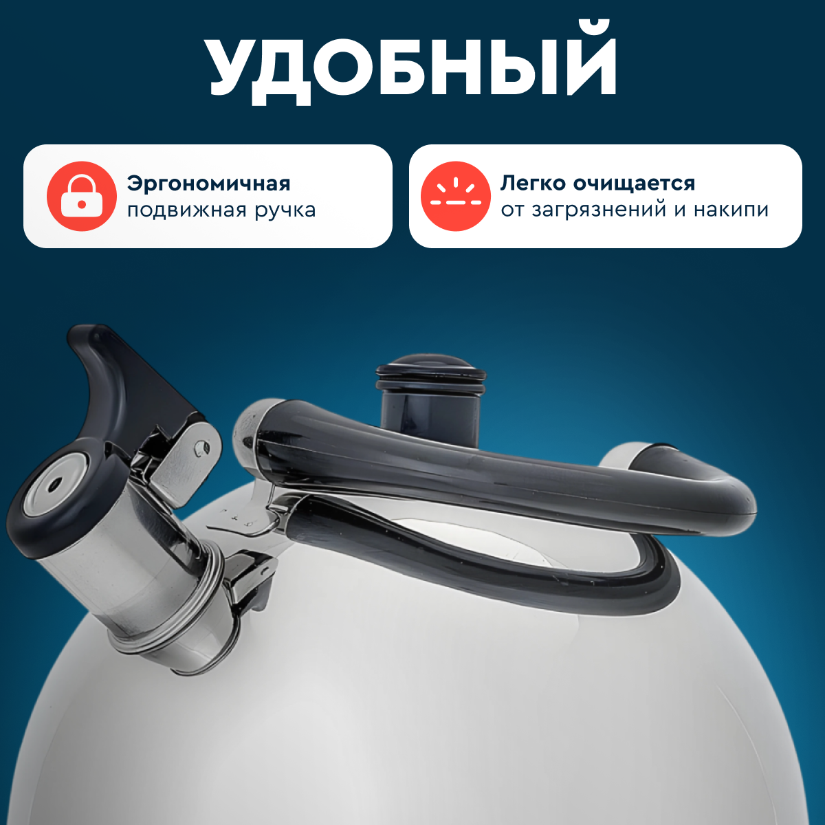 | Особенности | индукционное дно / со свистком / термоизолированная ручка / фильтр в носике |