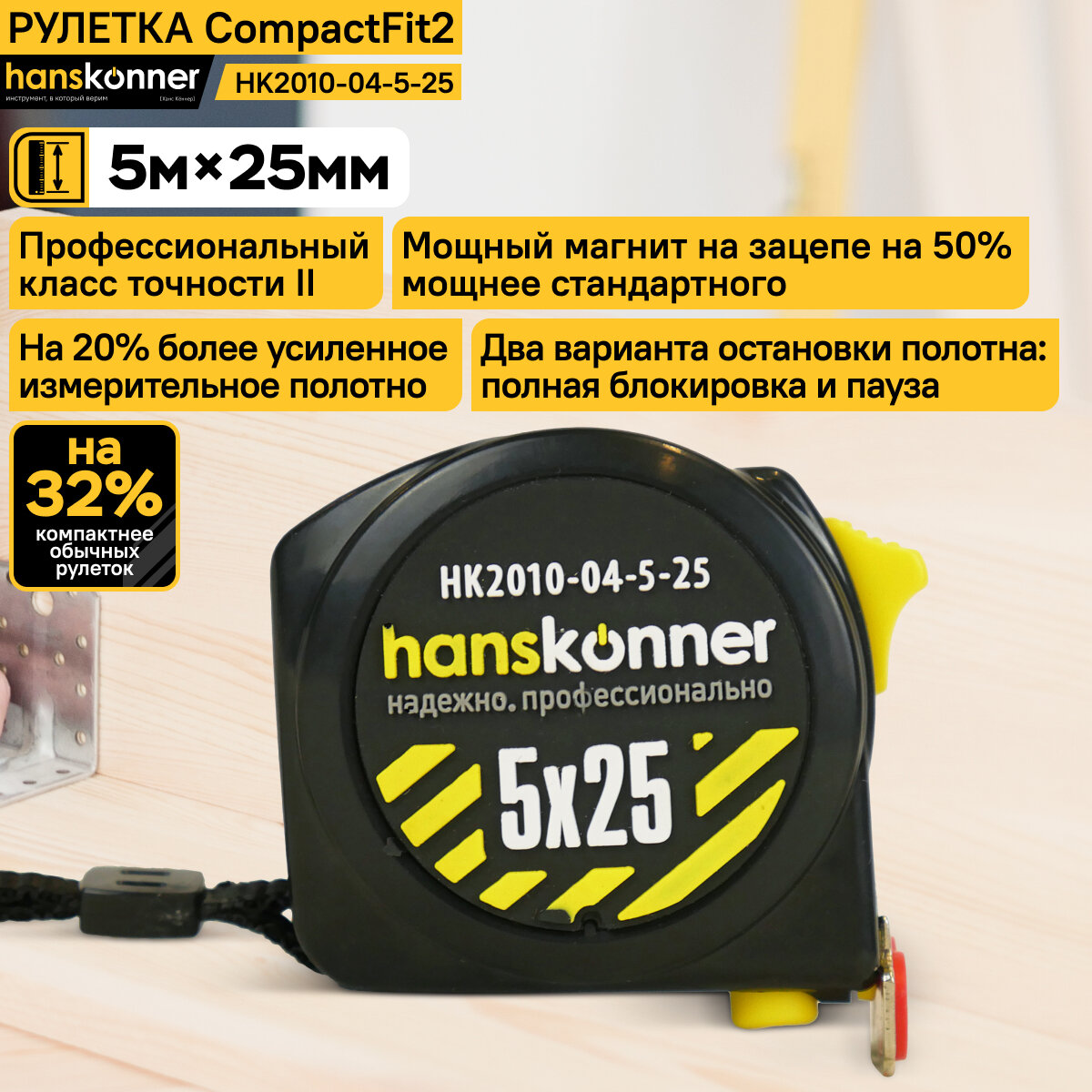 10 цен на Рулетка Hanskonner HK2010-04-5-25 5x25 мощный магнит