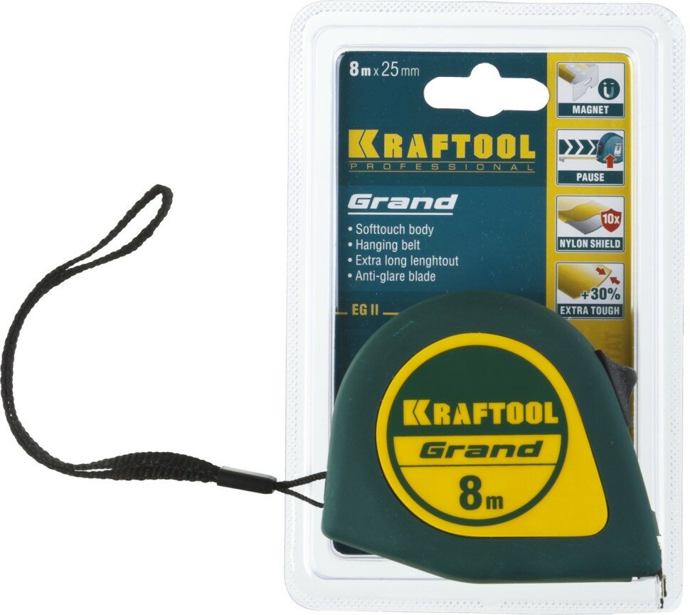 KRAFTOOL GRAND 8м / 25мм рулетка с ударостойким корпусом (ABS) и противоскользящим покрытием, ( 34022-08-25 ) информация: