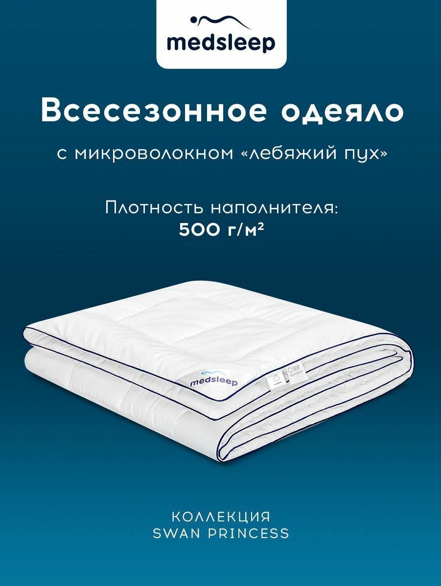 Medsleep Одеяло полуторное, всесезонное "Swan Princess" теплое 300 г/м2, микроволокно "Лебяжий пух", 140х200 3 352 ₽