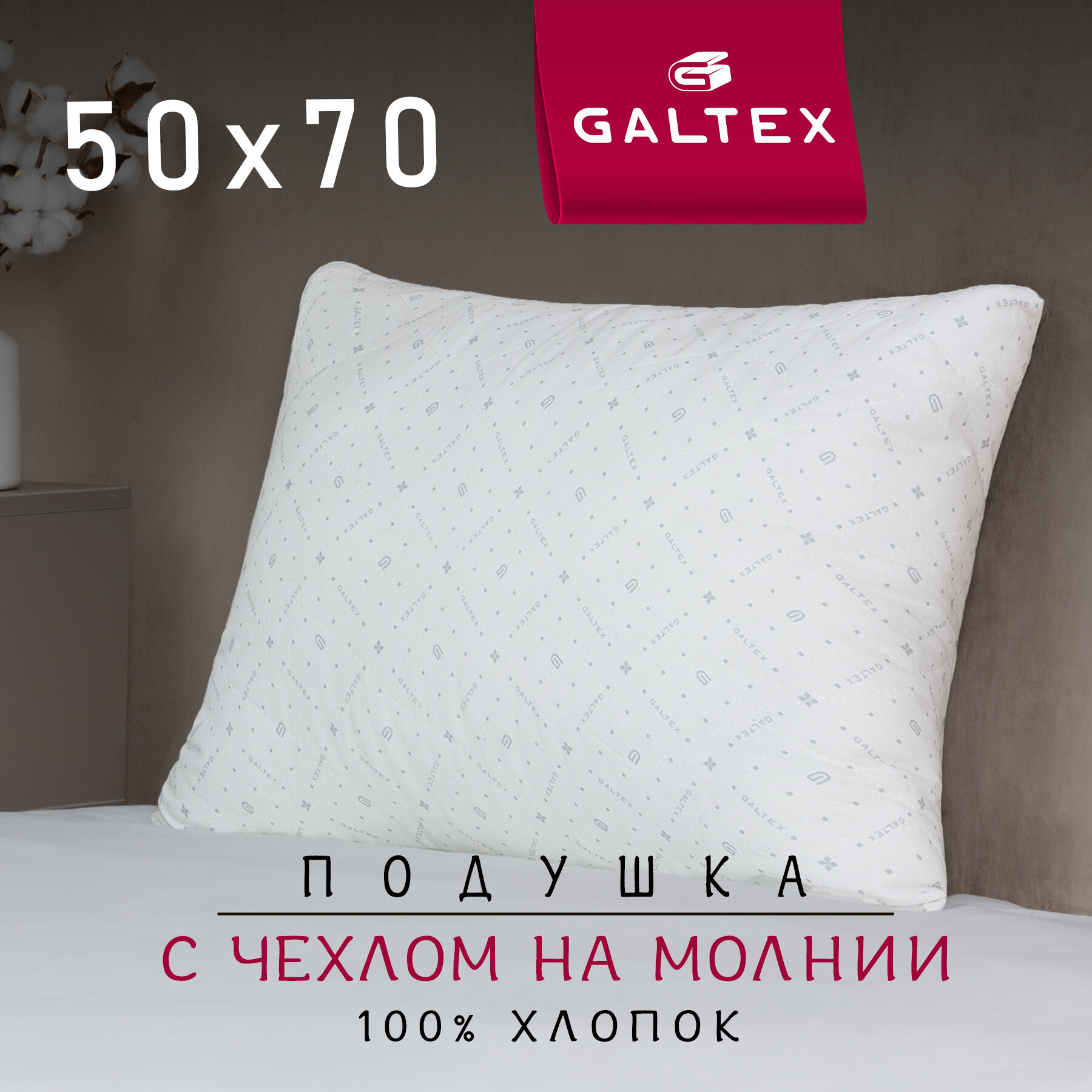 Подушка 50х70 - 1 шт Galtex "Лебяжий пух" с чехлом из хлопка информация: