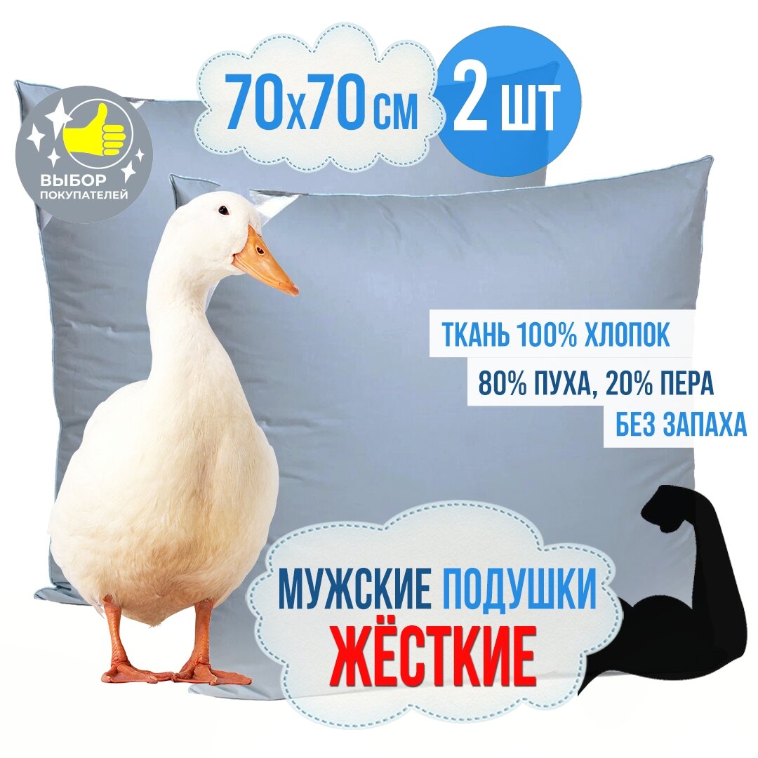 Комплект подушек ЖЕСТКИХ мужских, 70x70 см - 2 шт, Пух/Перо PREMIUM, Чехол 100% хлопок, ГОСТ 30332-2015 информация: