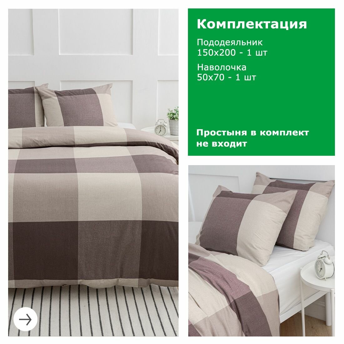 Комплект постельного белья 1 спальный YERRNA, наволочка 50х70 1шт, перкаль, серо-бежевый, с2081шв/213432 1 476 ₽