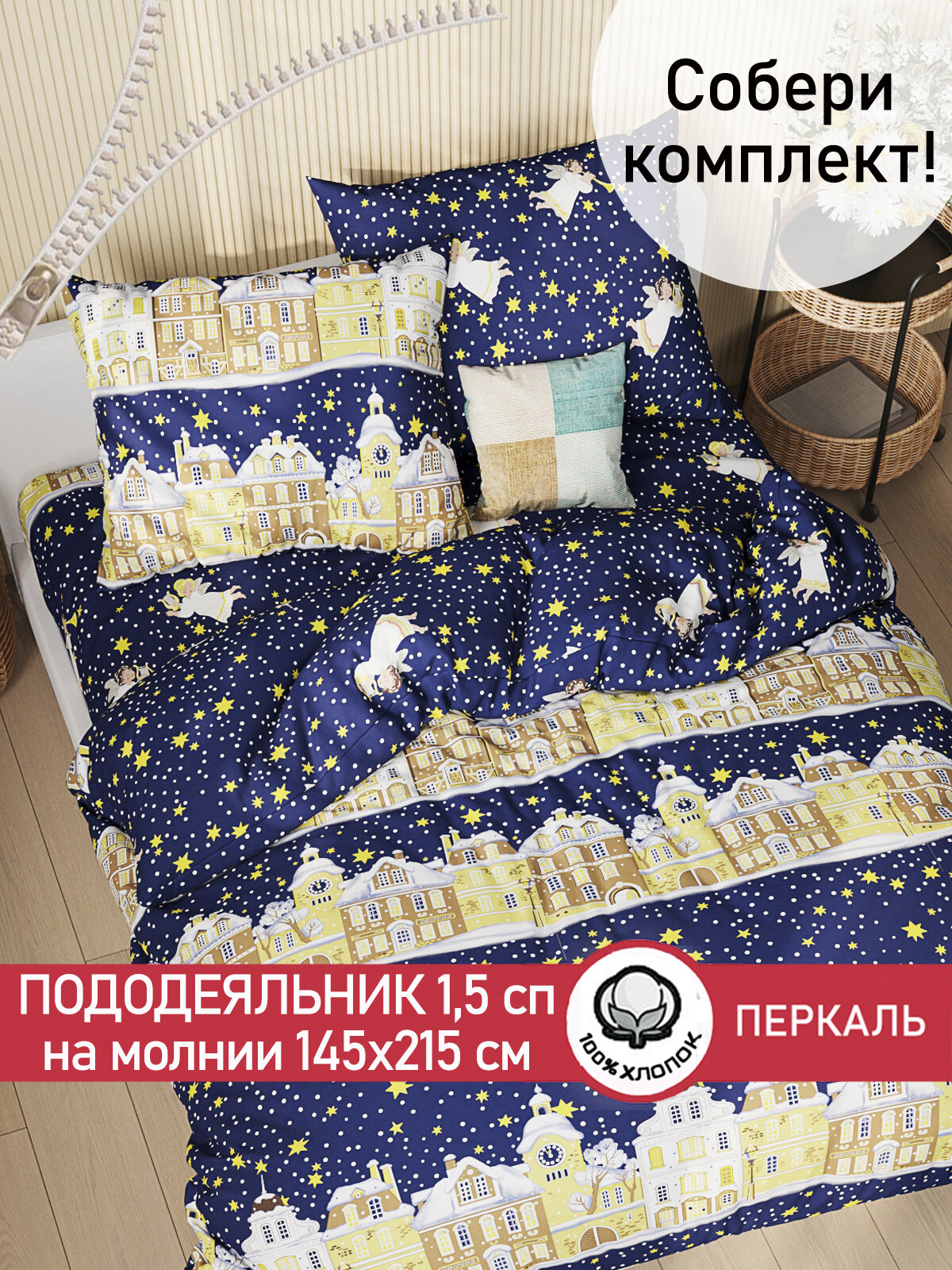 Пододеяльник 145х215 см на молнии, 1,5 спальный, Сказка "Зимняя сказка", ткань перкаль, 100% хлопок информация: