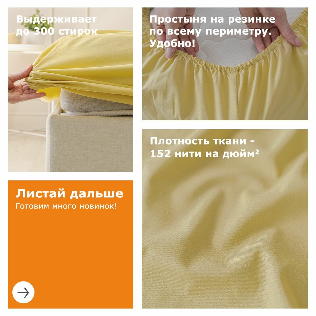Простынь на резинке 140х200 аналог икеа, YERRNA, 100% хлопок, перкаль 1 105 ₽