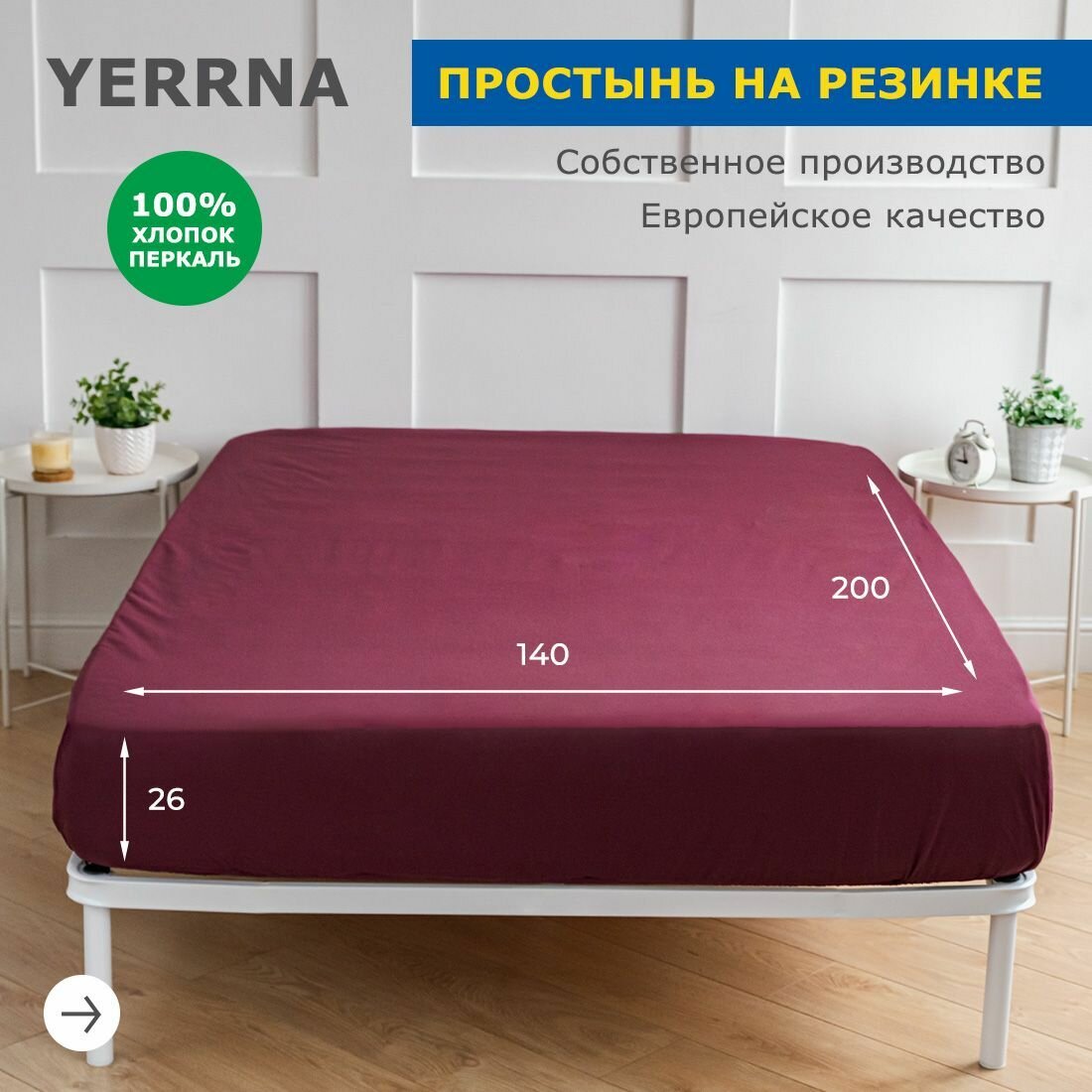 Простыня на резинке 140х200+26,YERRNA, перкаль, однотонная