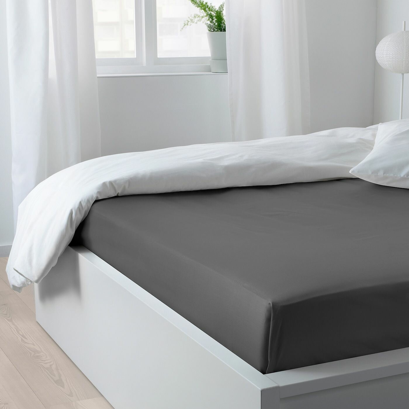 NATTJASMIN Простынь на резинке 180х200 см икеа, натяжная/темно-серый (70442679) 5 102 ₽