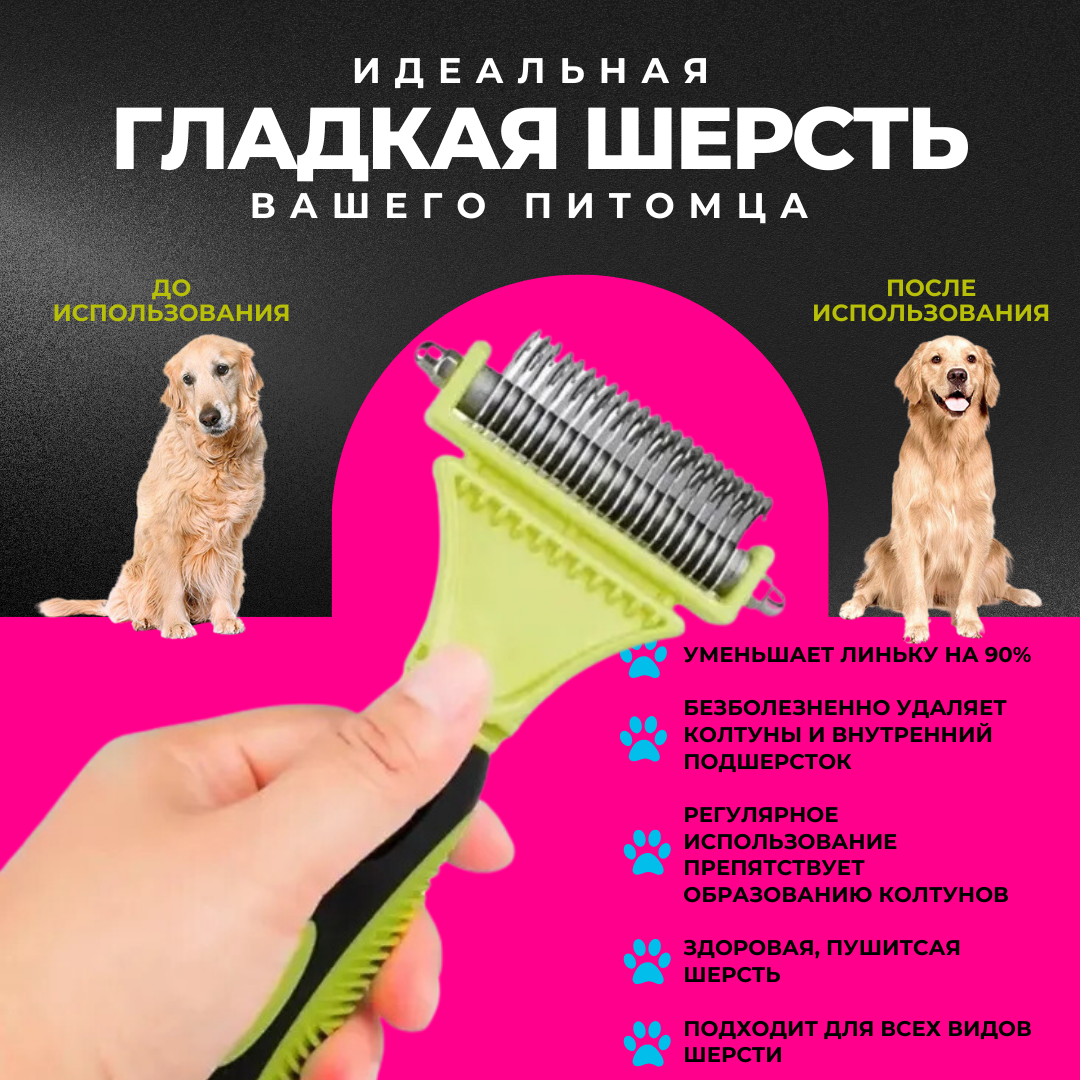 Отзывы на Стриппинг двухсторонний ZooWell (зеленый), расческа для удаления колтунов у кошек и собак, дешеддер для груминга
