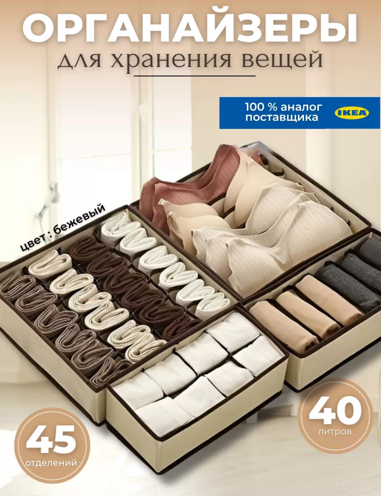 10 цен на Органайзер для шкафа, Органайзер для хранения, органайзер для вещей, набор 4 шт, бежевы аналог IKEA