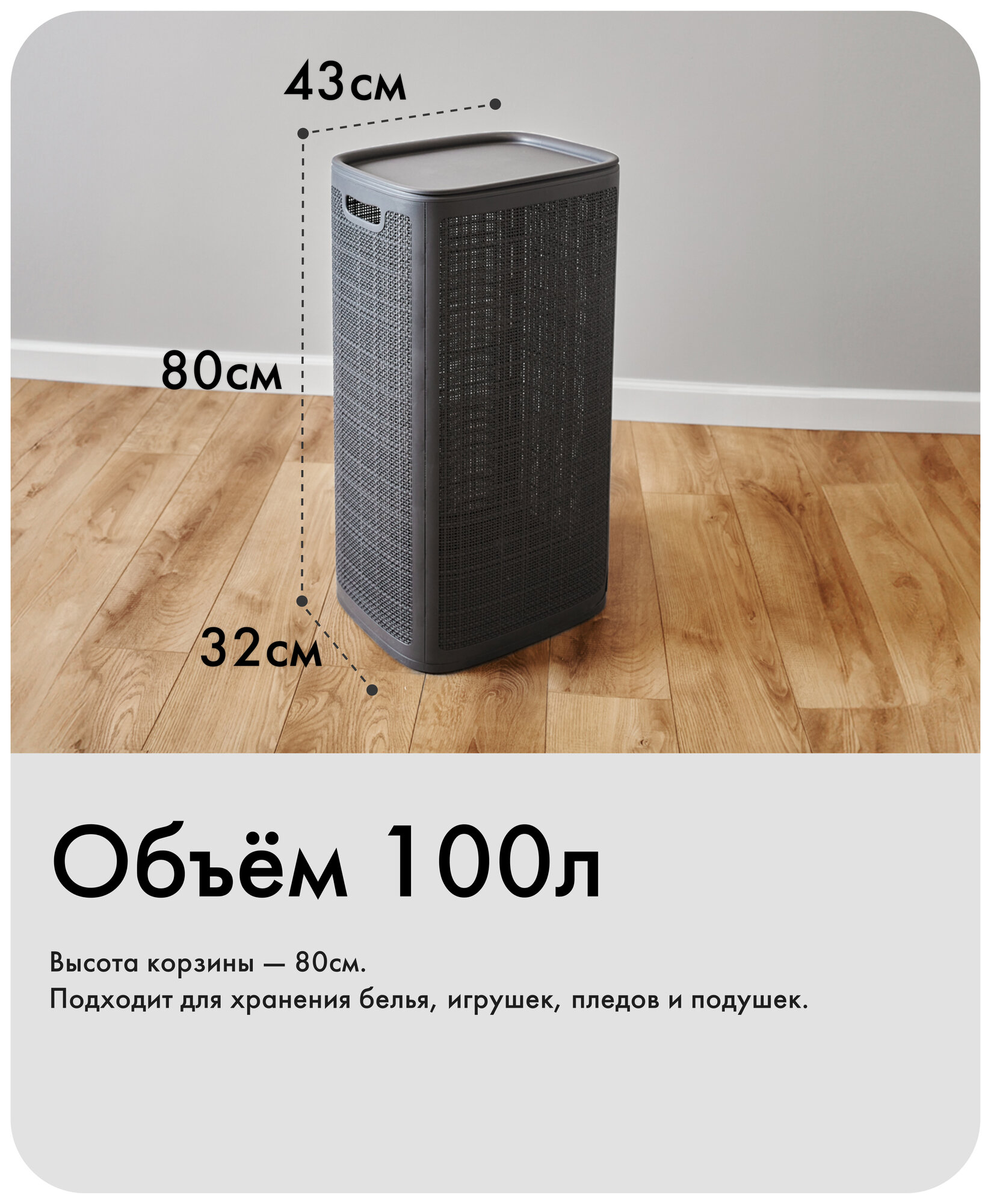Корзина для белья «Лён», 100л, графит, Альт-Пласт, сборная, полипропилен информация: