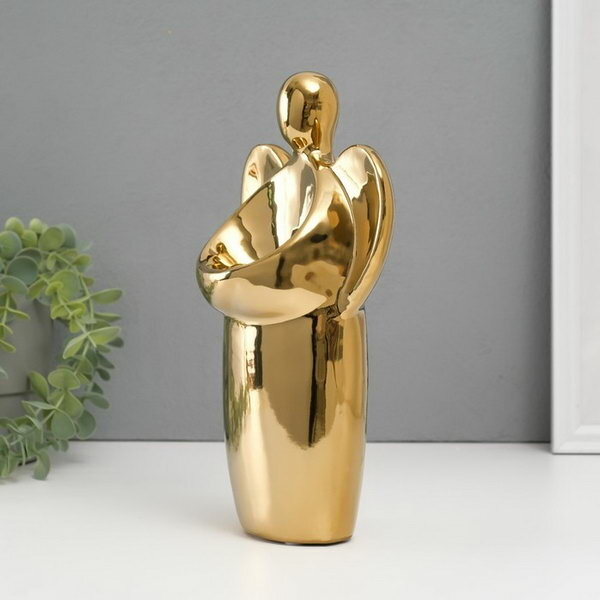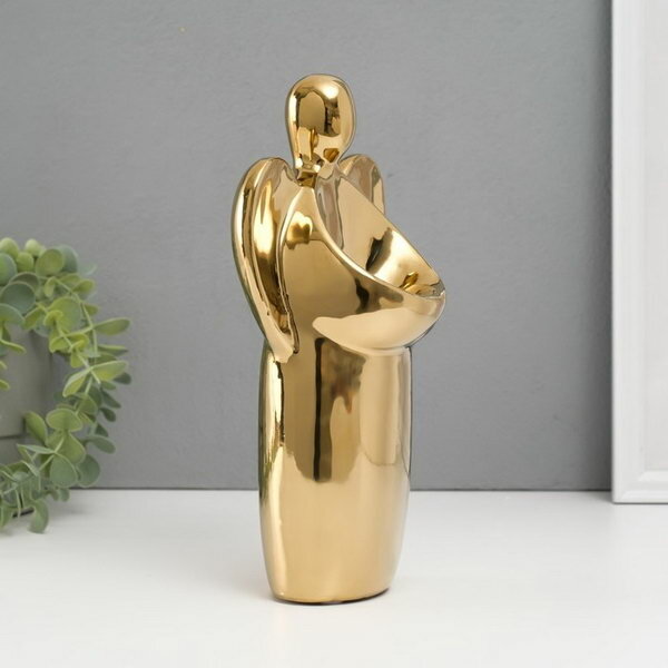 Подсвечник керамика на 1 свечу "Ангел", d=3.5 см, золото, 14x9.5x25 см информация: