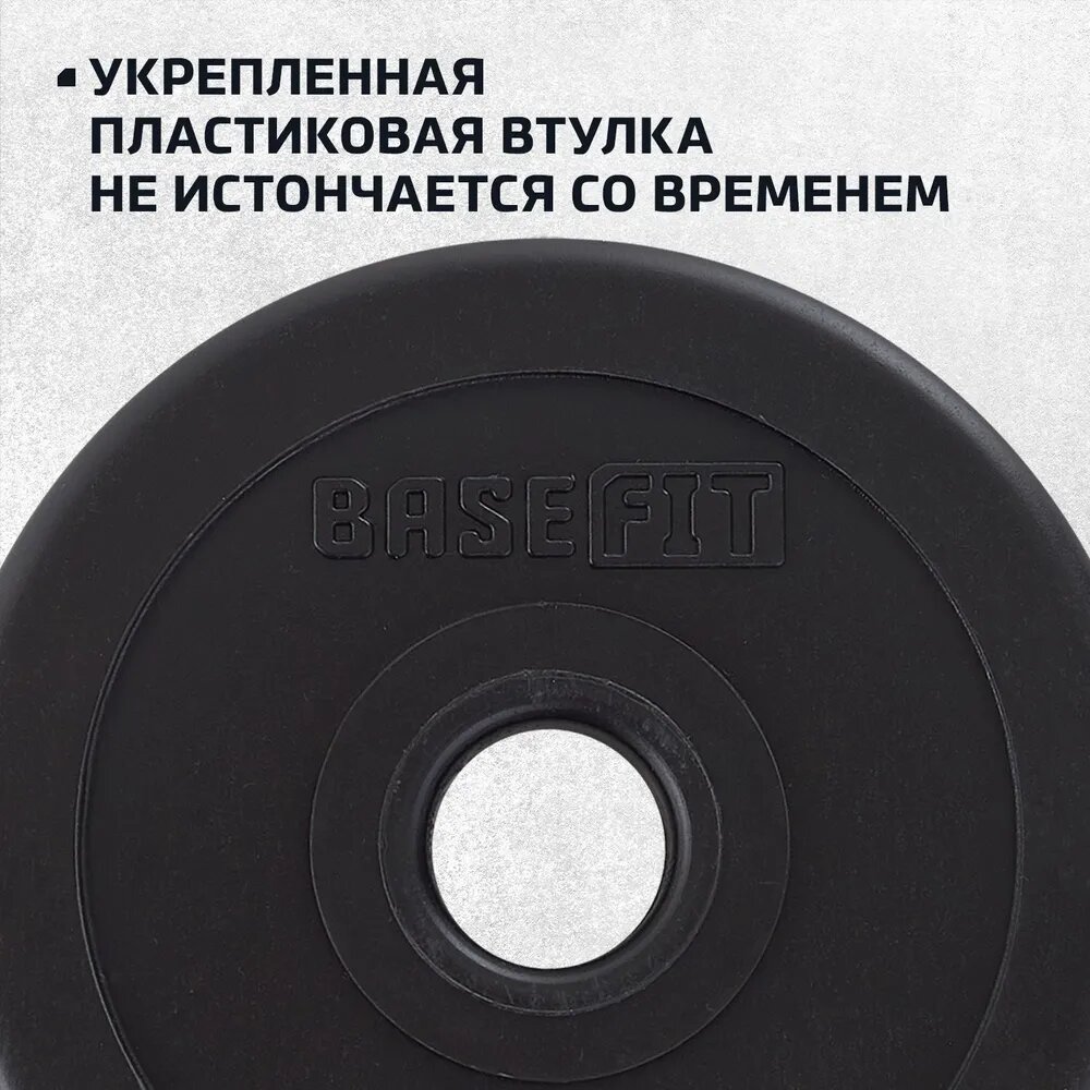 Блин для штанги пластиковый BASEFIT, вес 10 кг, d=26 мм, цвет черный информация: