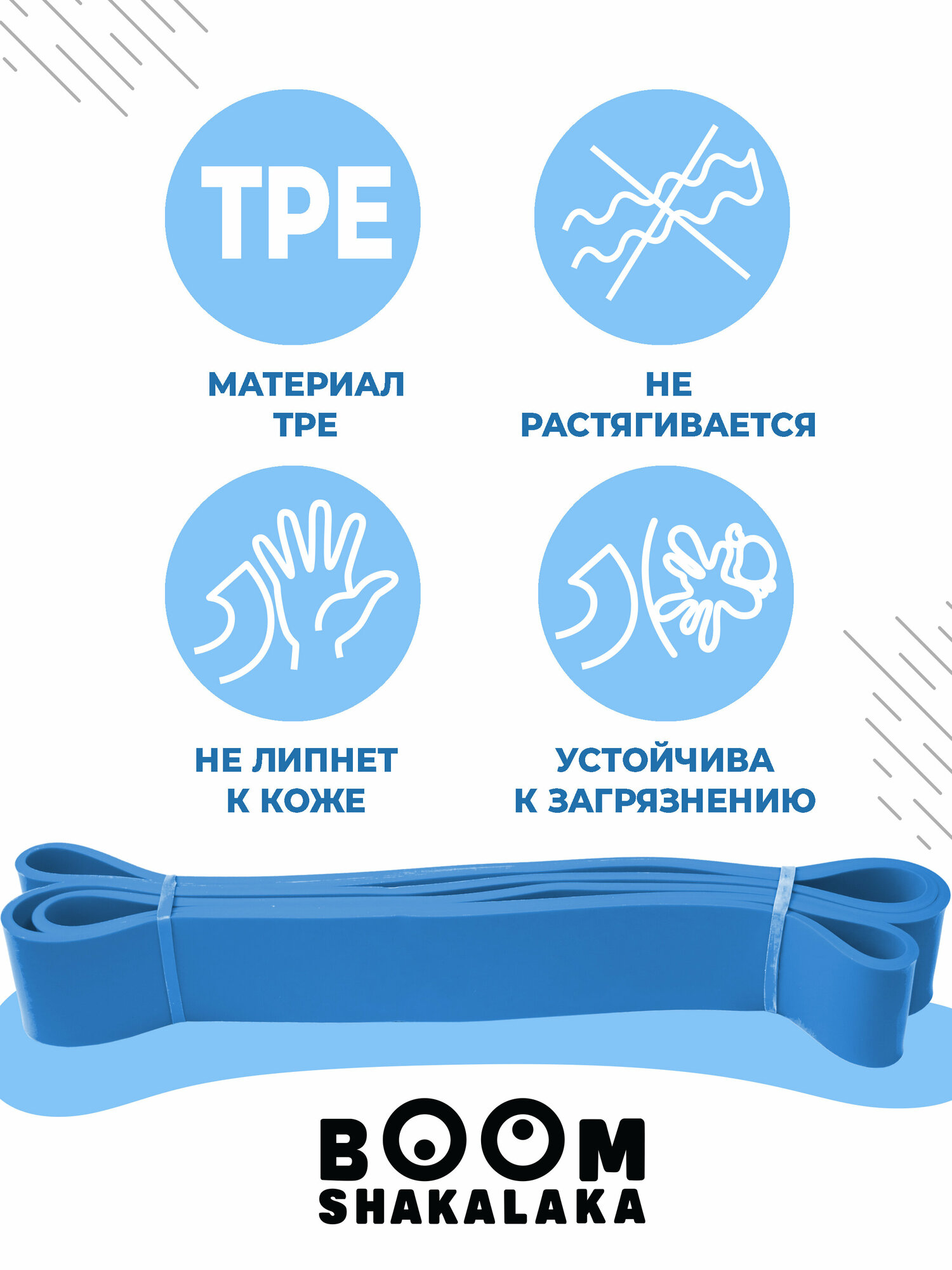Эспандер ленточный Boomshakalaka, нагрузка 30-80 кг, 208x6.4x0.45 см, материал TPE, цвет синий, фитнес-резинка, петля для йоги, резинка для подтягивания информация: