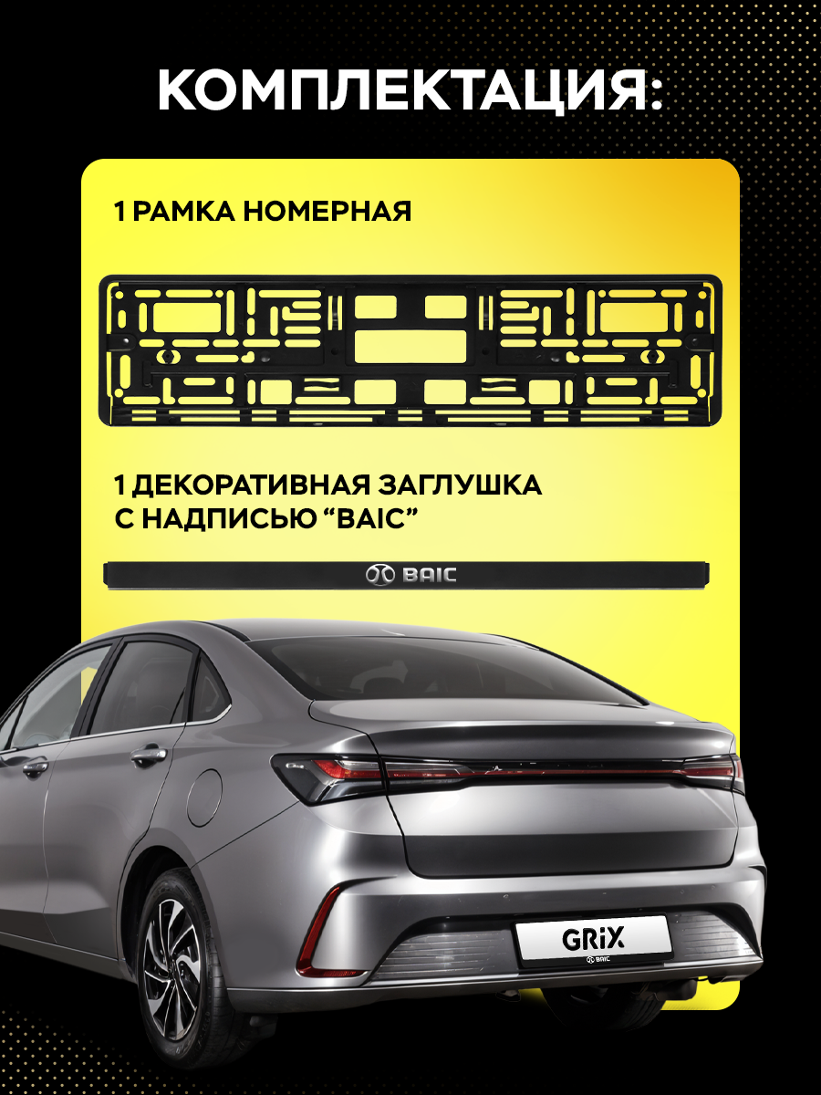 Grix Рамка автомобильная с надписью "BAIC" / Адаптеры номера авто для китайских автомобилей информация: