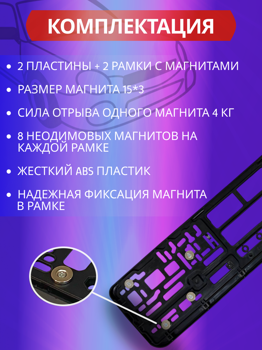 Универсальный комплект 2х рамок на 8 магнитах для номеров на авто 2 рамки с магнитами и стальные пластины 3 490 ₽