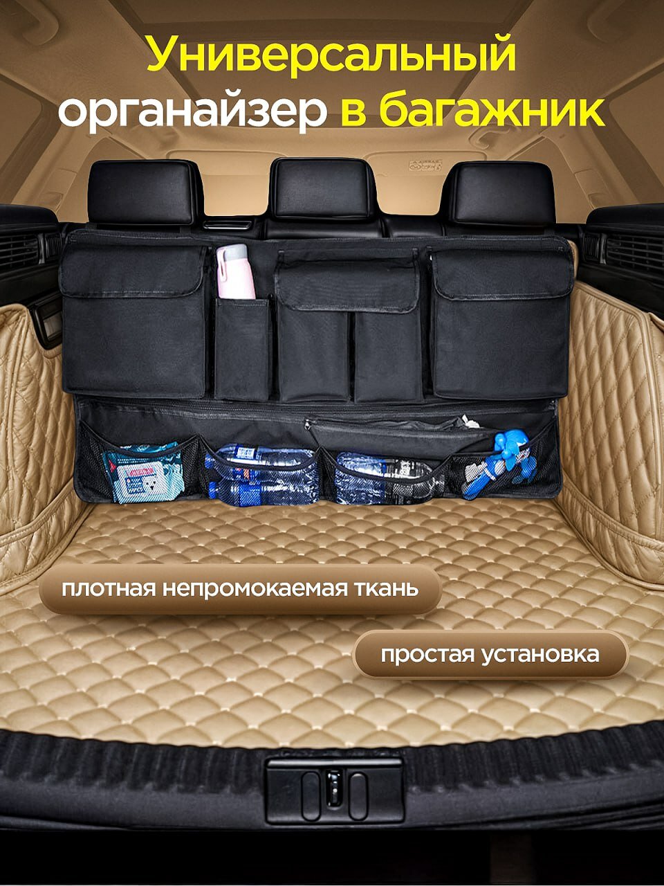 10 цен на Органайзер в багажник, 10 отделов, на спинку заднего сиденья, черный