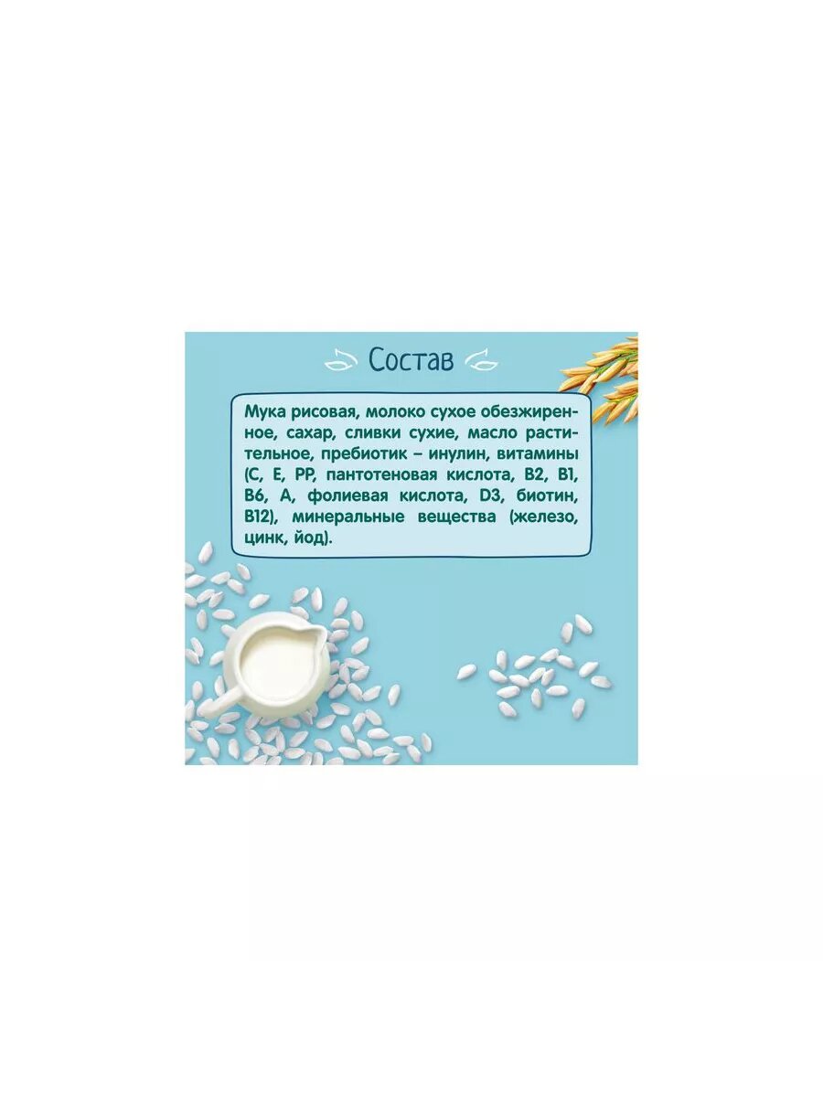 | Состав | мука рисовая, молоко сухое обезжиренное, сахар, сливки сухие, масло кукурузное, пребиотик- инулин, витамины (С, Е, РР, пантотеновая кислота, В2, В1, В6, А, фолиевая кислота, D3, биотин, В12), минеральные вещества (железо, цинк, йод) |