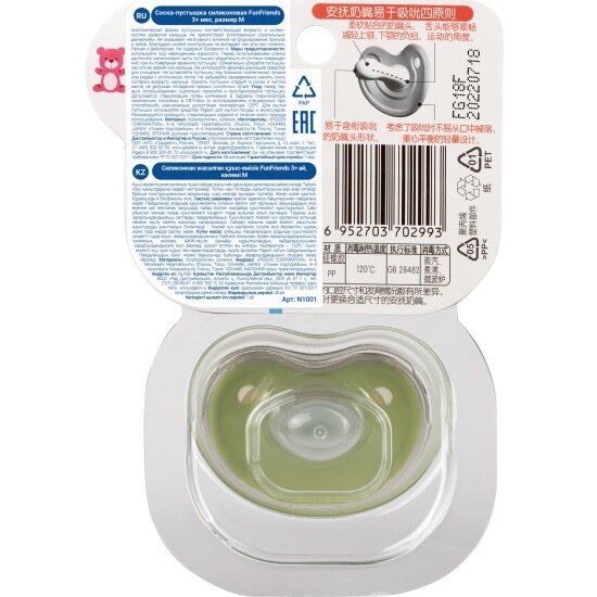 Pigeon Пустышка FunFriends Мишка силиконовая 3+ мес р M 1 шт 320 ₽