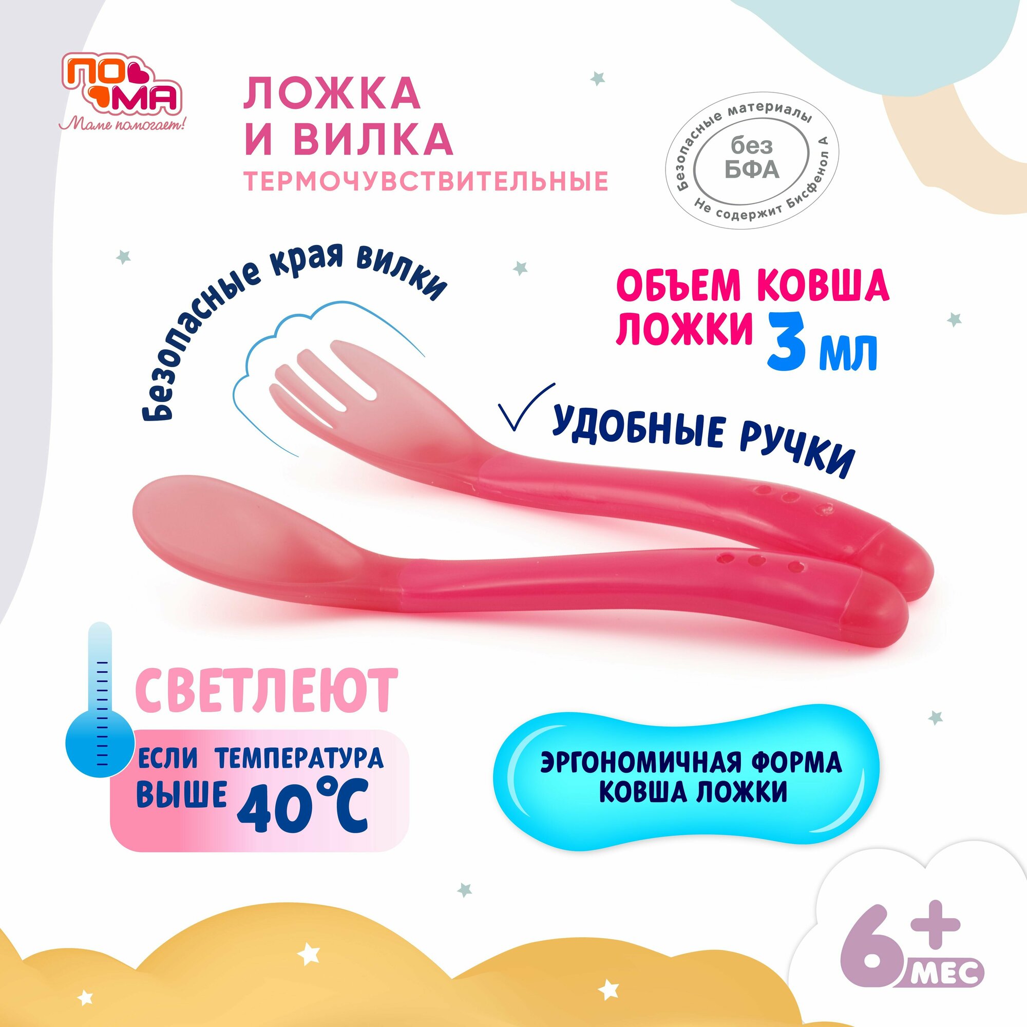 Набор ложек и вилок для прикорма ПОМА, термочувствительные, пластик, от 6 месяцев 280 ₽