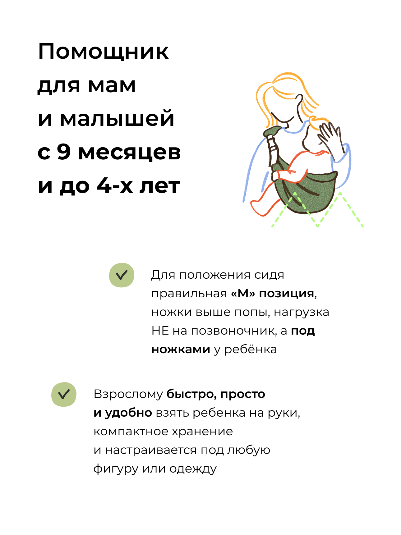 | Положение ребенка | в положении полулежа / сидя лицом к родителю |