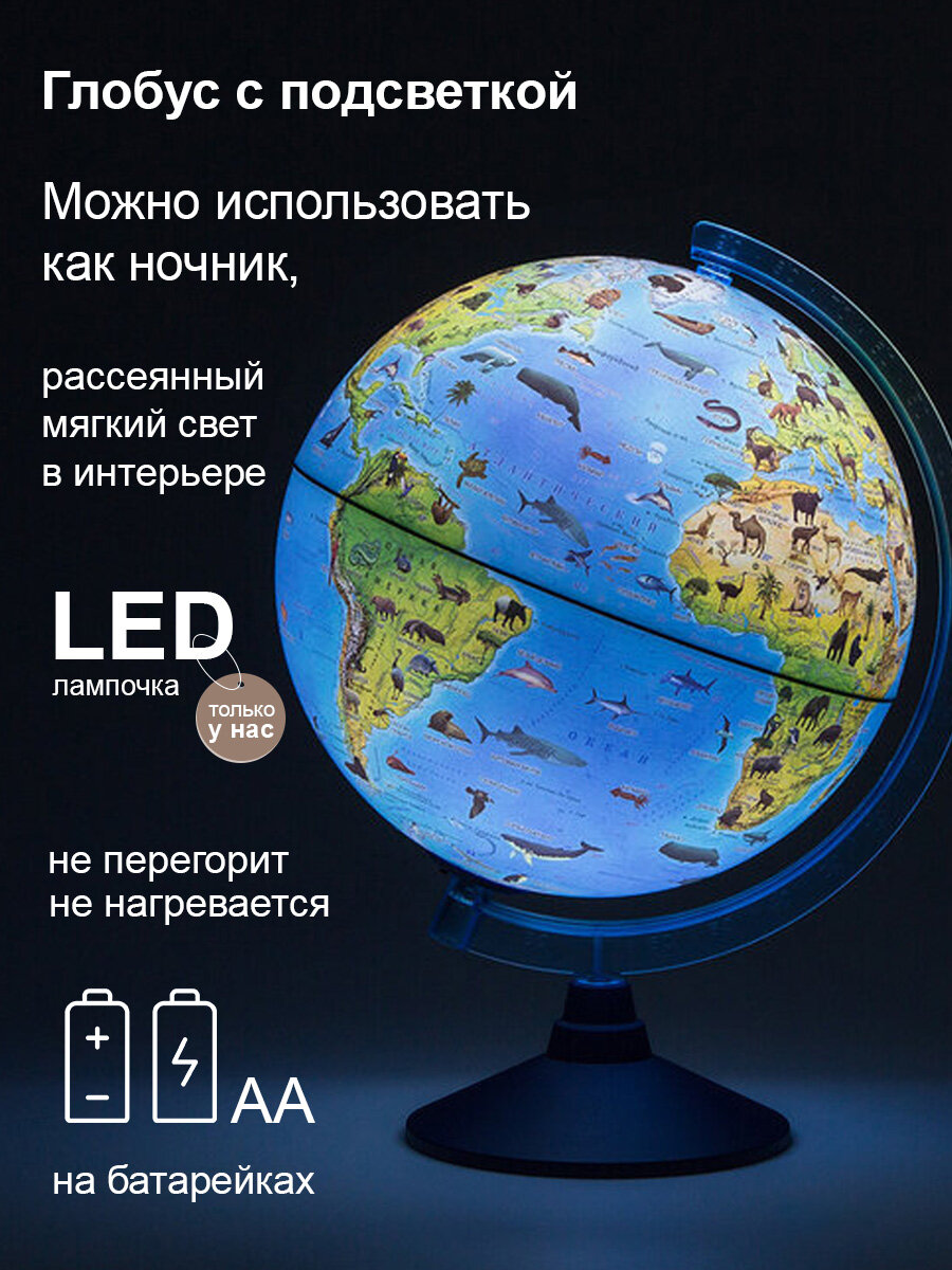 Глобус интерактивный Globen Зоогеографический, рельефный, с подсветкой, d 250 мм, работает от батареек (INT12500307)