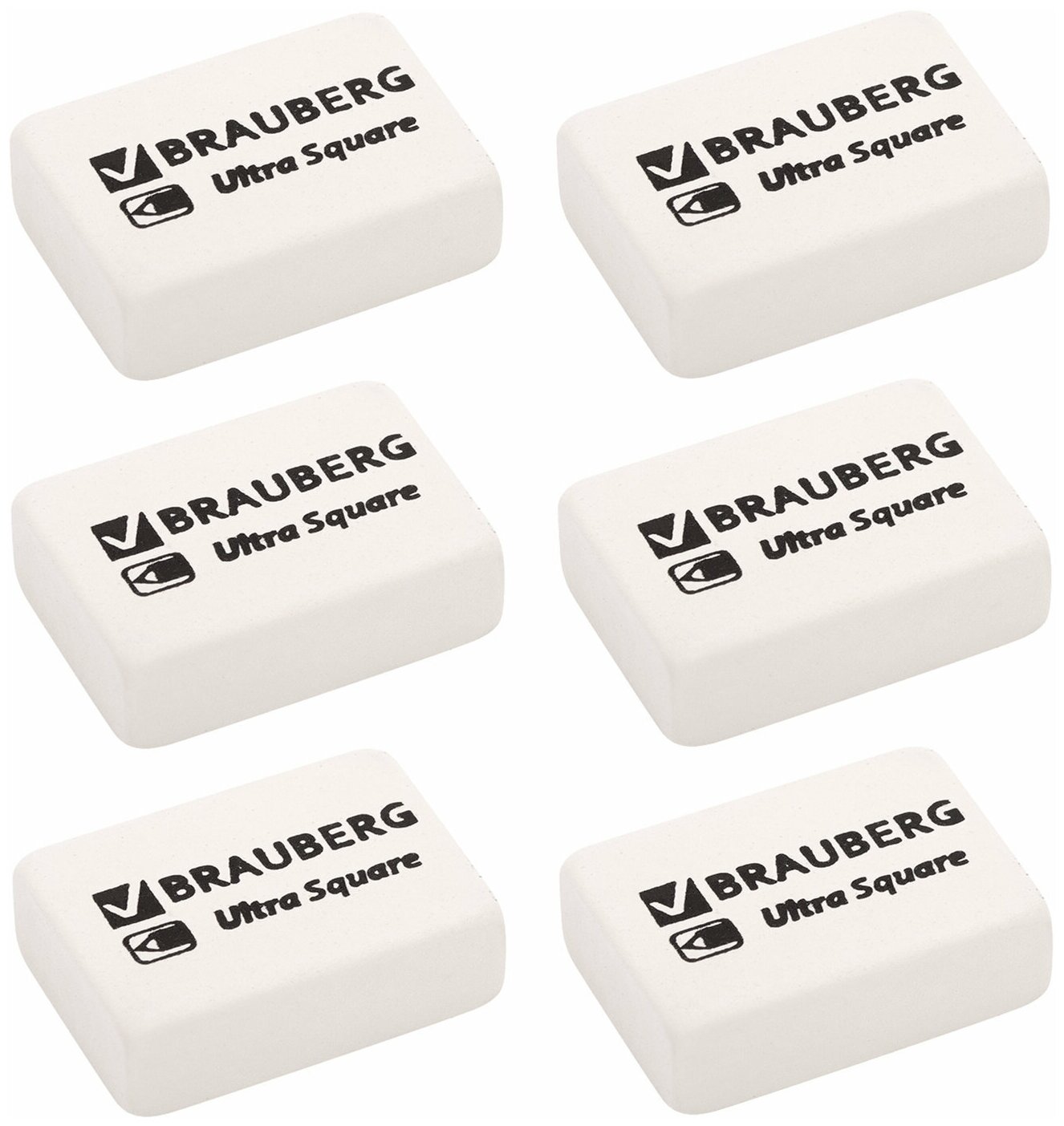 Ластики BRAUBERG "Ultra Square" набор 6 шт, размер ластика 29х18х8 мм, белые, натуральный каучук, 229603 информация: