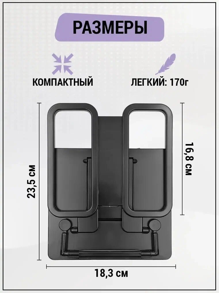 Подставка для книг и учебников школьная на стол AXLER, настольный книжный держатель для чтения тетрадей, для школы и дома, пластиковый, черный 554 ₽