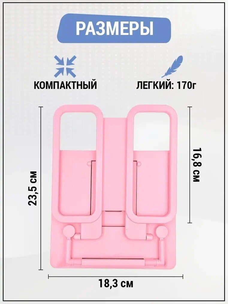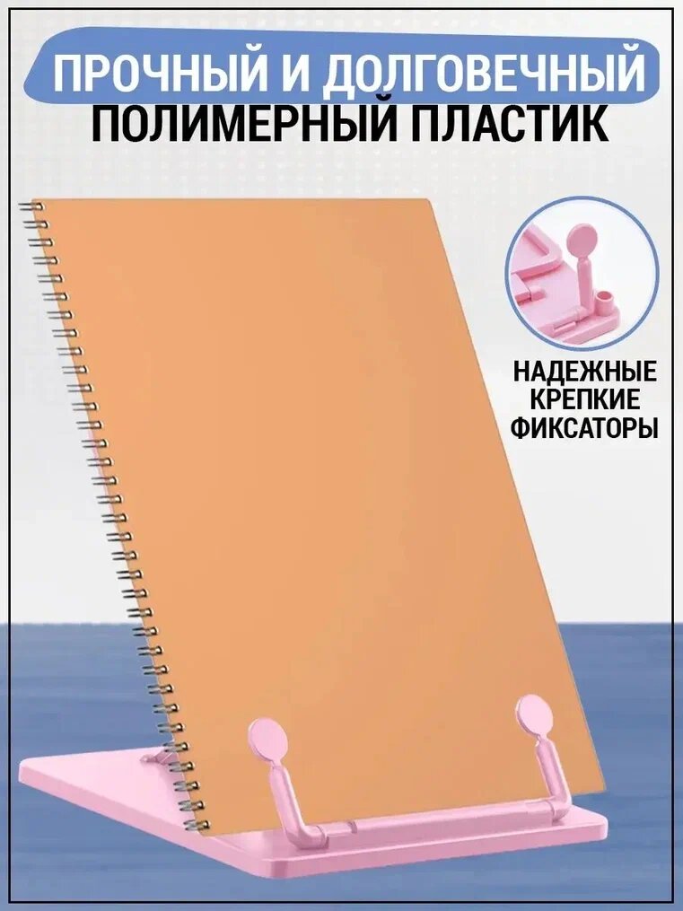 Подставка для книг и учебников школьная на стол AXLER, настольный книжный держатель для чтения тетрадей, для школы, пластиковый, пастельный розовый 569 ₽